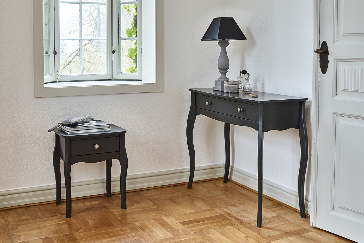 Choose from a black or white finish and complete the room by adding matching items from the range.