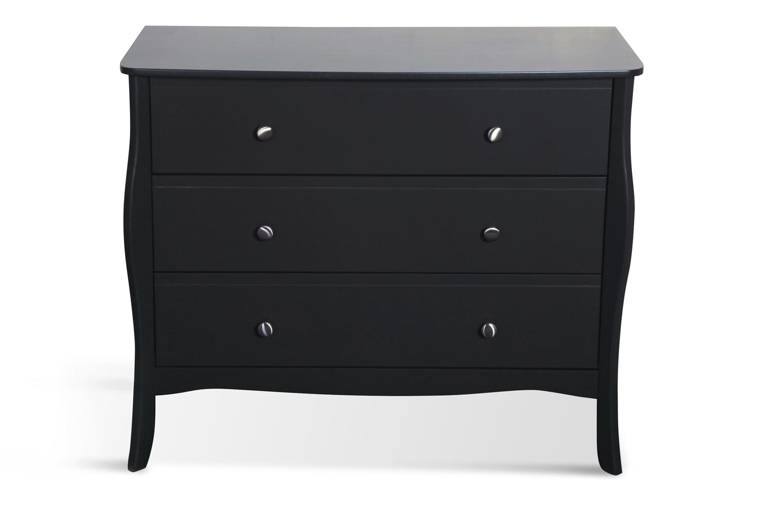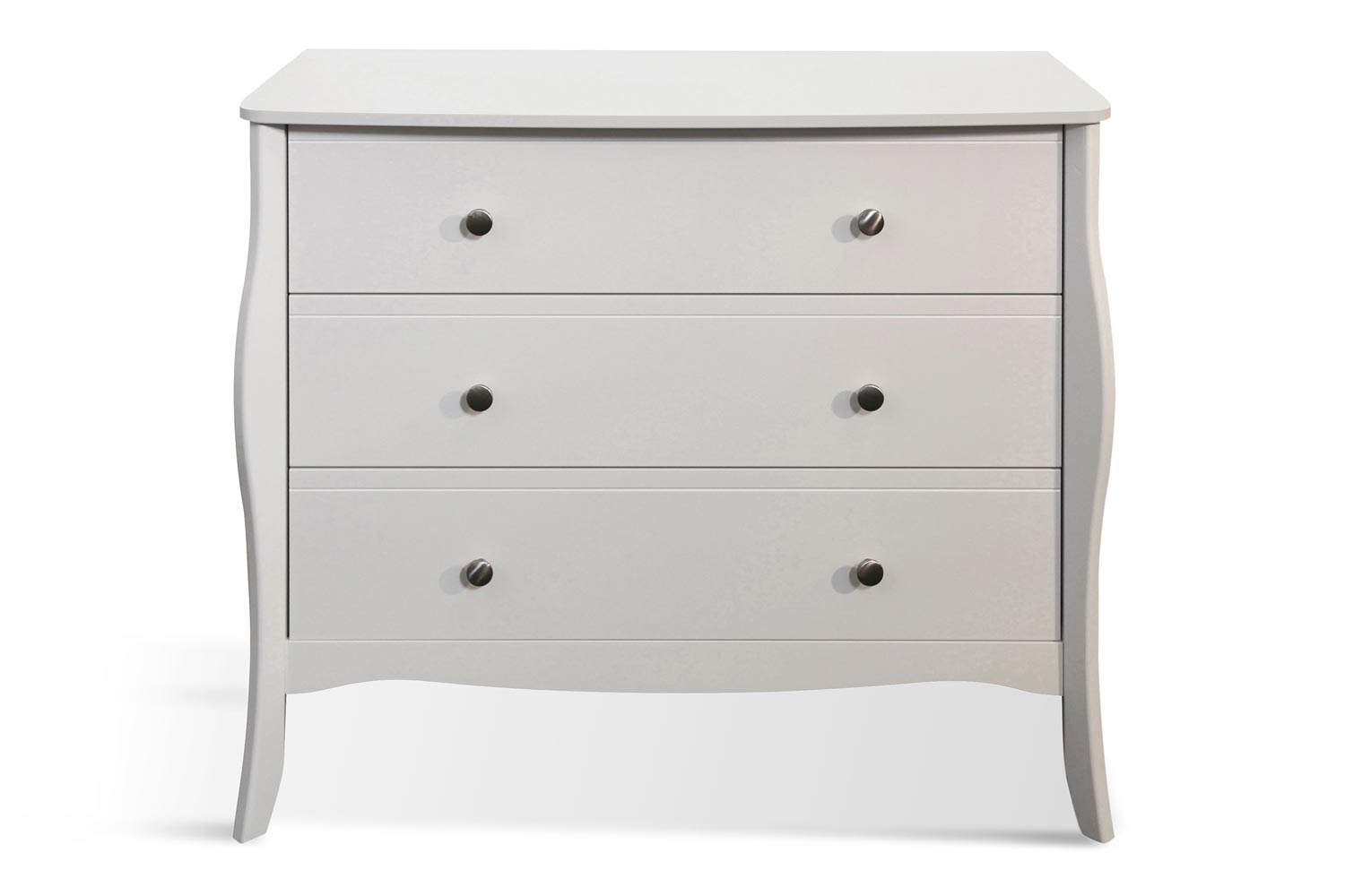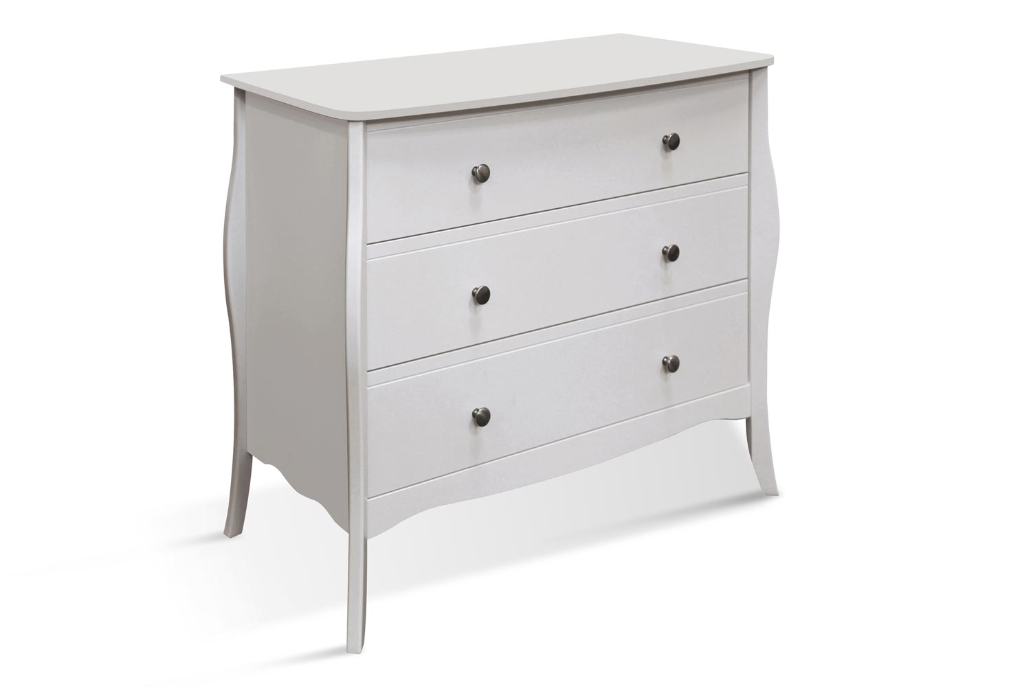 With slender curves and dainty legs, the Mabelle exudes French boudoir chic. This chest includes 3 full-width drawers with stainless steel handles for a modern sleek effect. The top surface provides additional decorative space for frames, a jewellery box or simply a vase of fresh flowers.