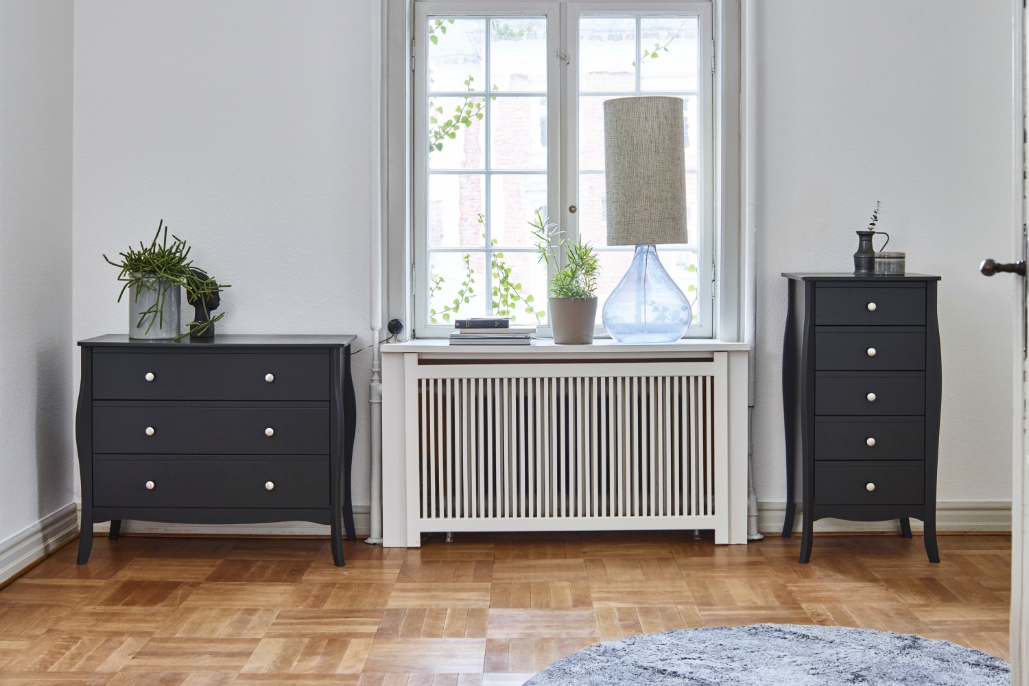 Choose from a black or white finish and complete the room by adding matching items from the range.