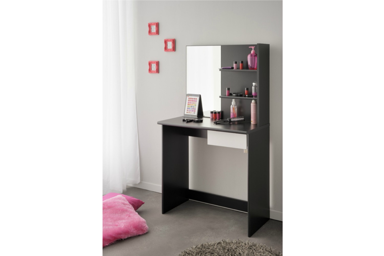 Make some space in your bedroom for the beautiful Pimpante vanity desk. Sampling new cosmetics can easily stack up to a mountain of products and the search for that favourite rouge lipstick turns into a tedious task. Eliminate clutter with this stylish and practical storage solution.