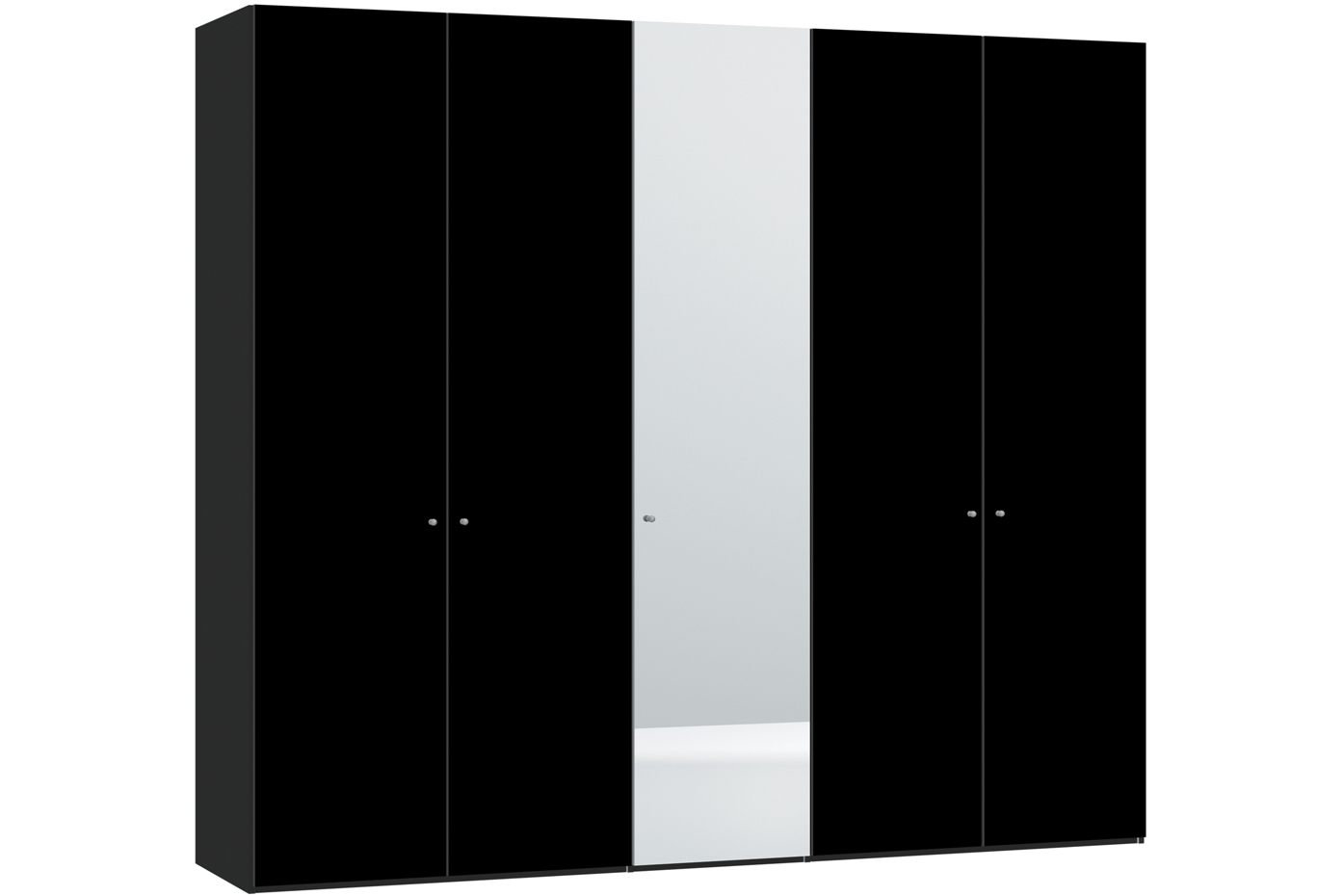 Janet Hinged 5 Door Wardrobe 253Cm | Black Glass + Mirror
