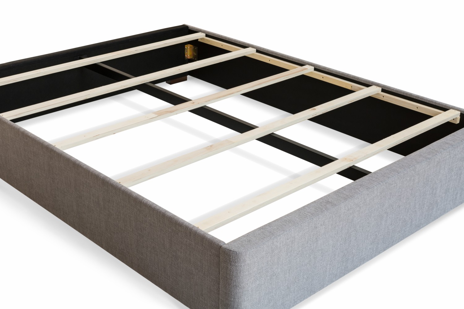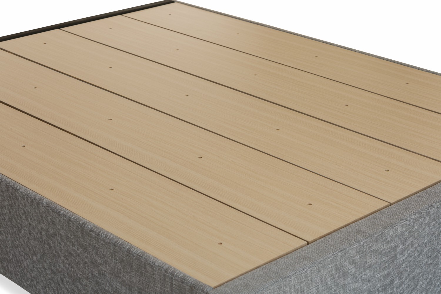 The base features a flat slatted support system with a metal centre rail for maximum ventilation and support.