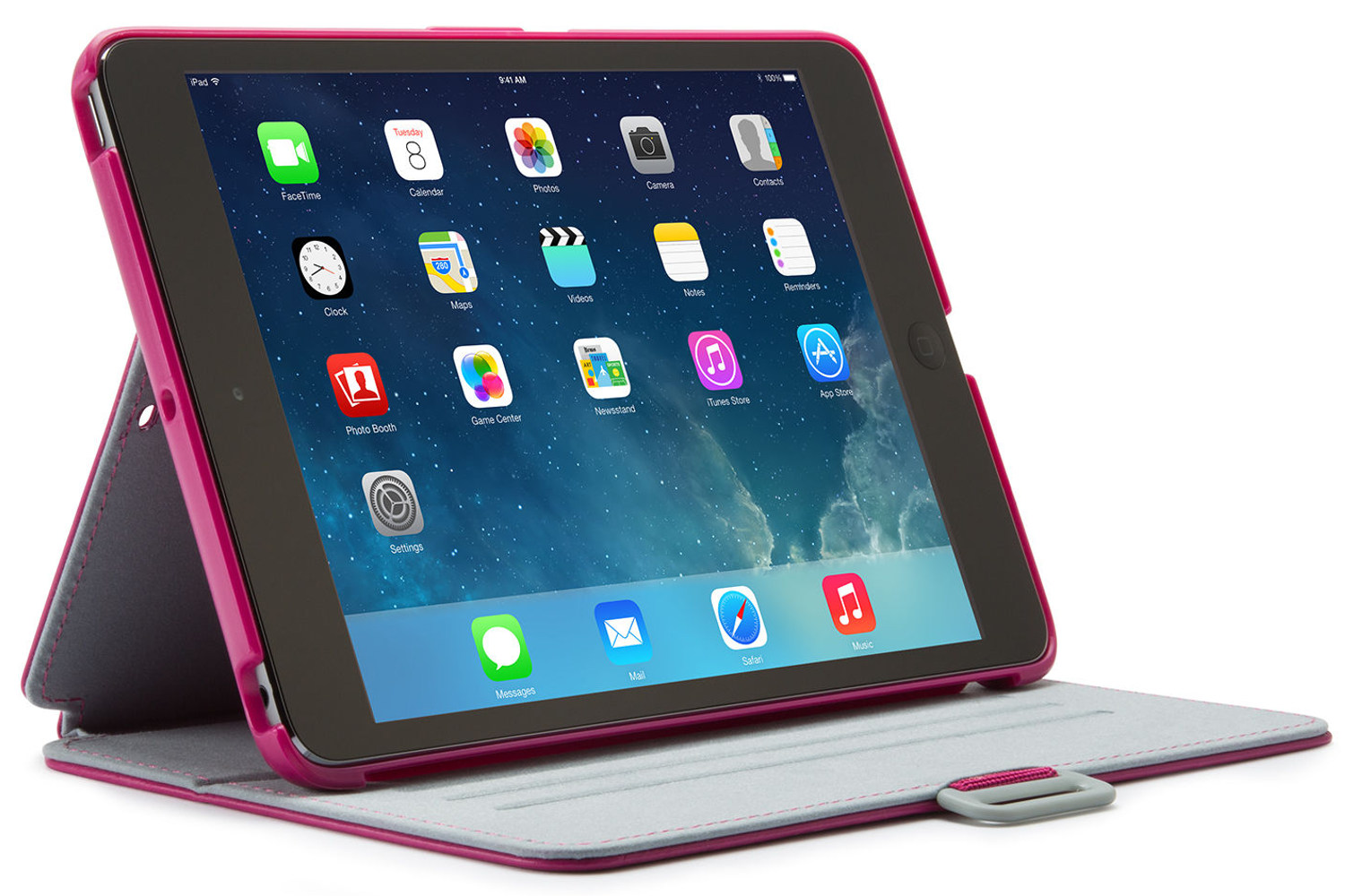An all-around protective hardshell with a soft inner lining keeps your iPad mini snug and scratch-free, while protecting against accidental bumps, drops, and spills. Vivid colors and high-resolution patterns garnish StyleFolio’s easy-to-clean vegan leather cover, making your iPad mini look better than ever with a seamless, impeccable design. A locking clasp secures your iPad mini in either a folded mode or shut for when you’re on-the-go. Plus, multiple viewing angles and a convenient typing mode make this iPad mini cover a clear winner.