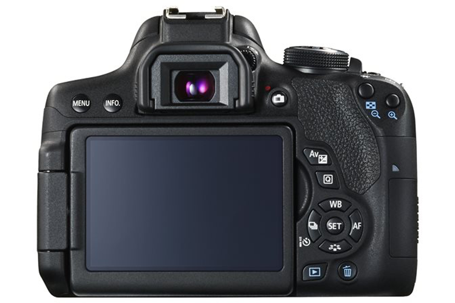 EOS 750D features an Intelligent Viewfinder which gives a much enhanced shooting experience. As you look through the viewfinder you can more easily see the focus point and any active AF areas, also the shooting information is clearly displayed.