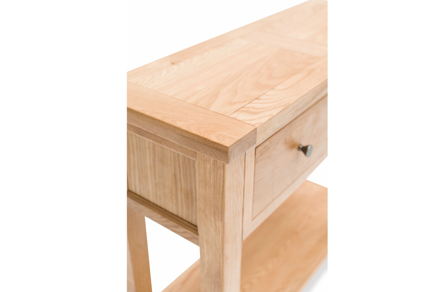 The Hillary range epitomises a timeless look that will complement a range of home decor schemes. Crafted from the highest quality American white oak, it has been finished with a clear lacquer for a stunning glossy surface that draws the eye to the natural grain of the wood