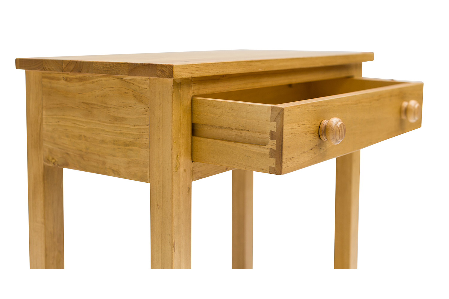Tidy away household bits & bobs in the full-width drawer, while the lower shelf can be useful for keeping larger items out of the way. Each leg has a protective grip on the end to prevent floors from getting marked or damaged. Decorate the pine surface with a fresh bunch of flowers to complete the natural theme.