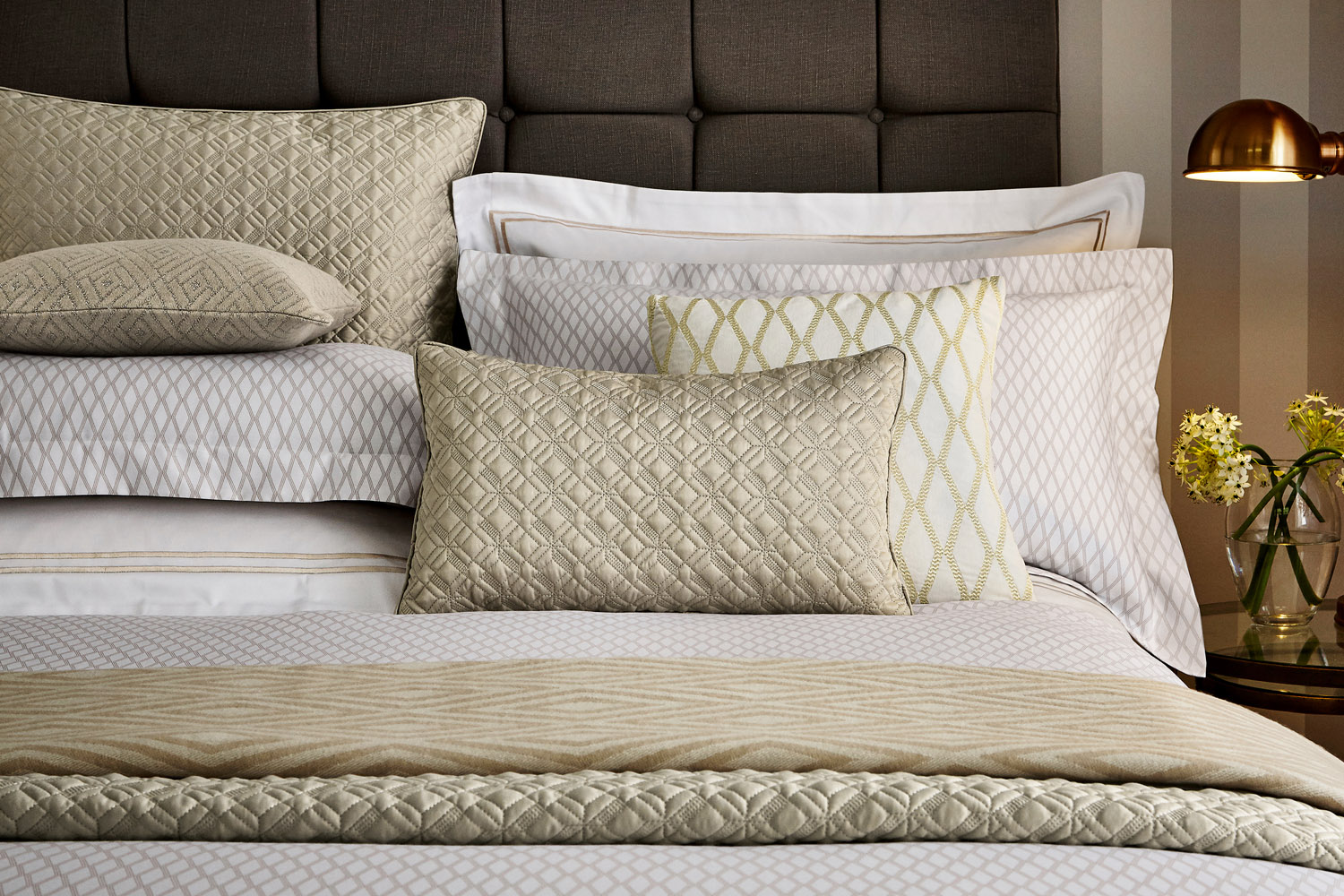 Spread open the beauty of this duvet set in your bedroom! Its soft 300 thread count, Egyptian cotton sateen material is decorated with a trellis print. Subtly elegant with soft hues, this king bed linen set has self-reversing design on the duvet cover and oxford pillowcase. This makes the Cadogan Duvet Set harmonizing and complementing to every bedroom theme.