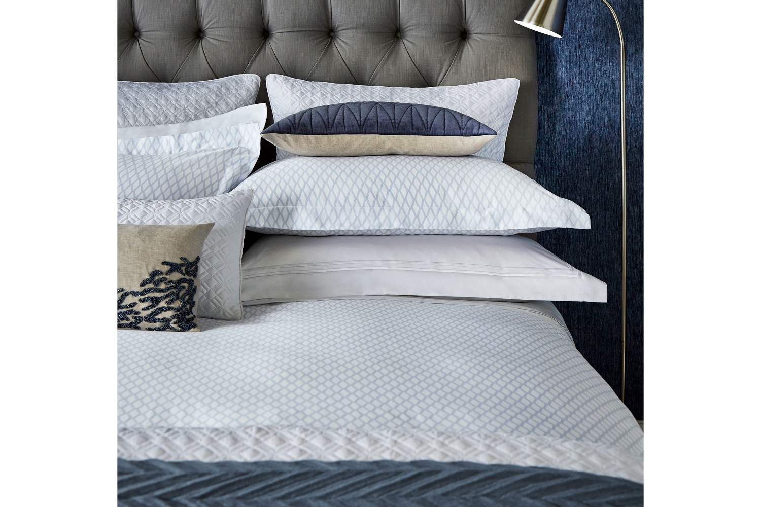 Be enchanted with the beauty of this super king bedding set, which comes with a lovely blue on white palette. The central motif of this duvet set is its elegant trellis print that decorates with finesse. Made from superior 300 thread count, Egyptian cotton sateen, this 260 x 220cm bed linen set has a duvet cover and oxford pillowcase that are self reversing. Accessorise the duvet with a pile of cushions and cosy throws.