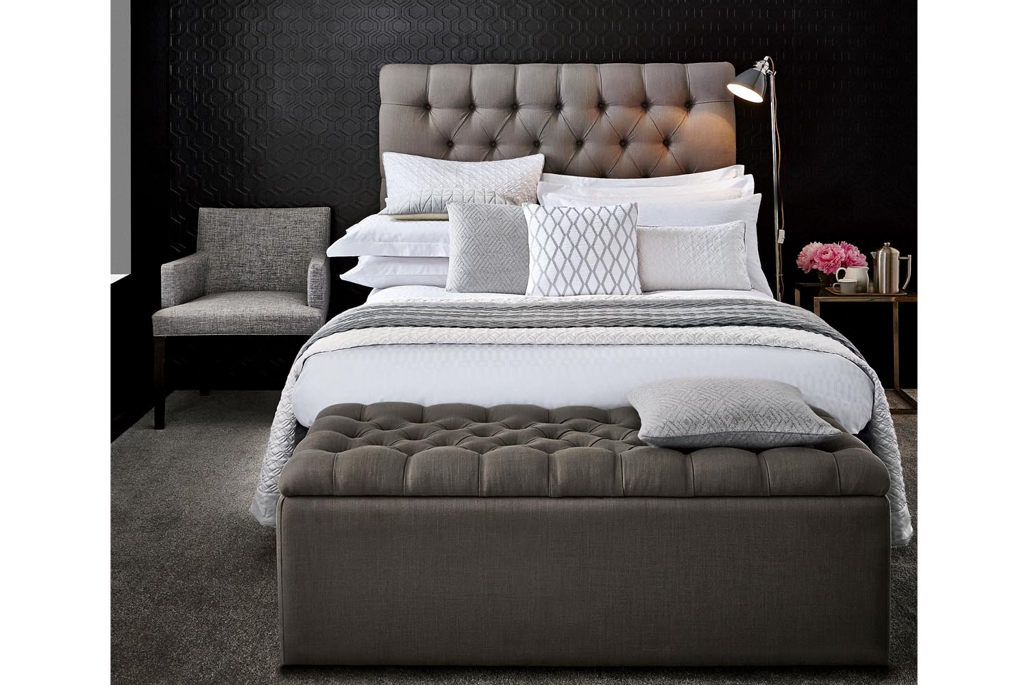 Made from rich Egyptian cotton with 300 thread count, this plush bedding set features a upscale design that fits super king beds. The repeating geometric pattern creates a subtle play on light and texture, resulting in a luxurious design that’ll elevate your bedroom’s ambience. Available in sizes, this machine washable duvet set looks wonderful when the entire collection is brought together.