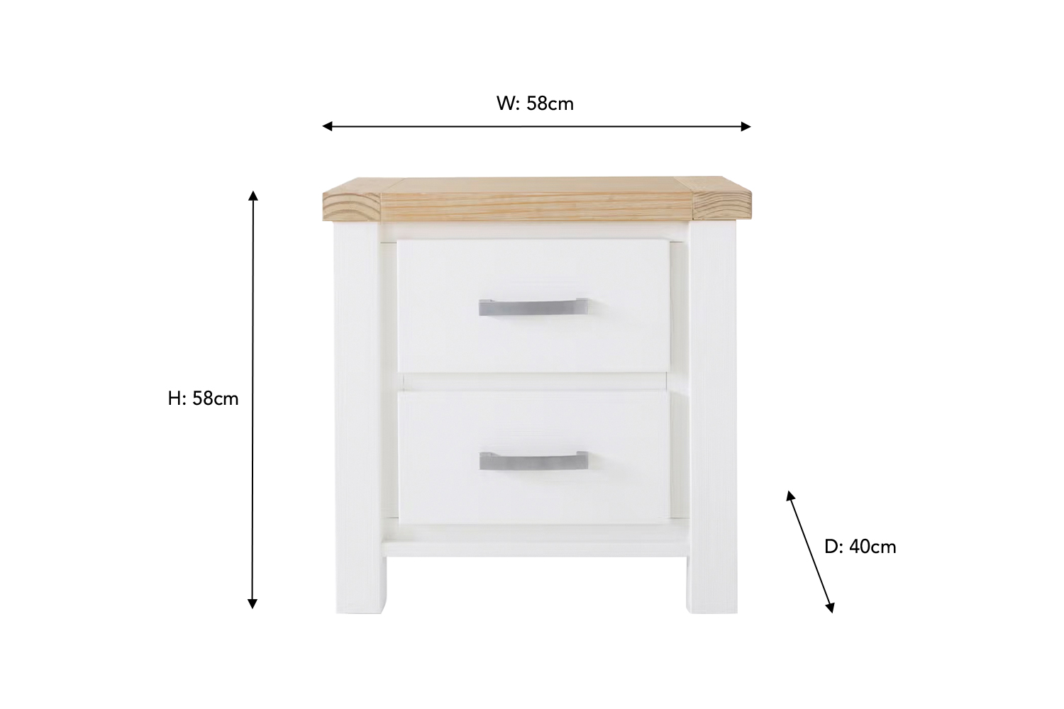 Combining endurance and style, the Cotswold locker is destined to become a focal point in your bedroom. Its wonderfully warm pine tabletop contrasts the base’s white painted finish perfectly. It includes two spacious drawers, perfect for storing all your bedtime essentials in an easy to reach place. While the tabletop provides ample space for a table lamp, some books, or your electronics.