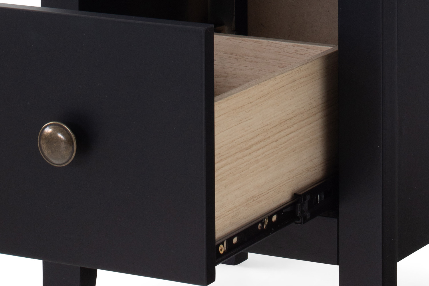 Constructed from wood and available in three incredible colours, the Otto Bedside Table guarantees longevity whole ensuring you find the perfect fit for your aesthetic. The two drawers provide ample space for all your bedroom’s bits and bobs, while the tabletop is ideal for a lamp, clock, or a few books. Circular metallic handles stand in stark contrast to this table’s finish. Available in multiple colours.
