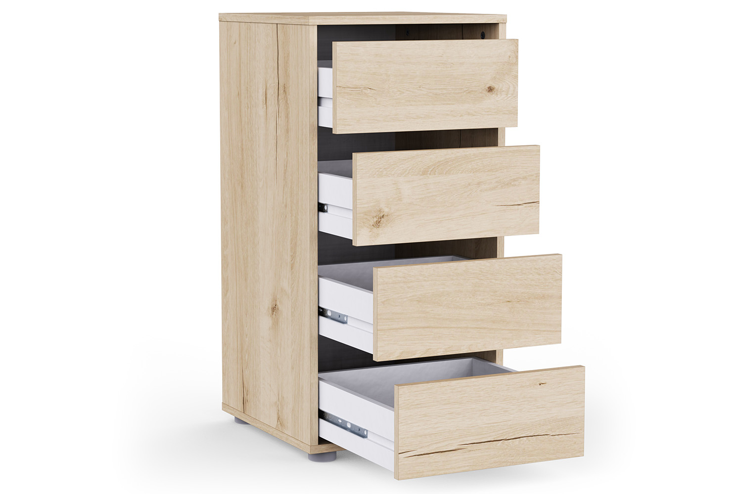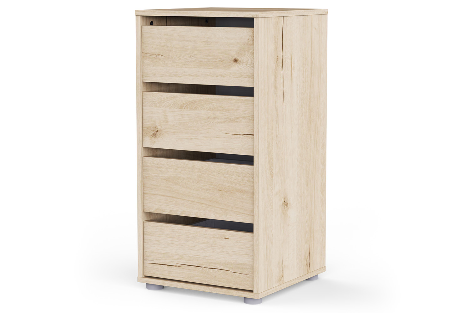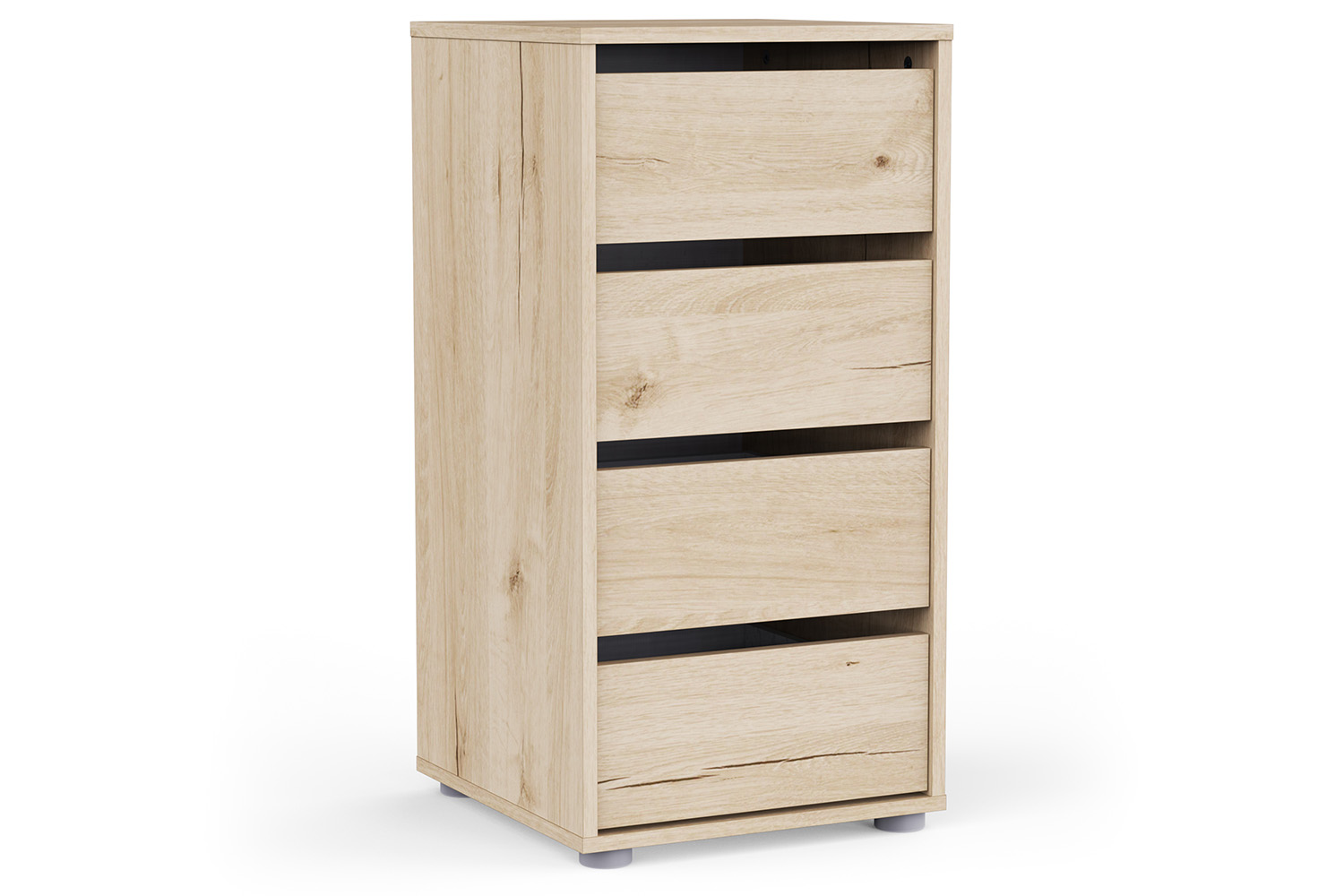 With four spacious drawers, this chest offers ample storage to keep your essentials neatly tucked away. Whether you’re furnishing a cozy bedroom or a modern living area, its understated look blends effortlessly with a variety of décor styles. It’s available in two different sizes and colours, so you’re sure to find the right fit for you.