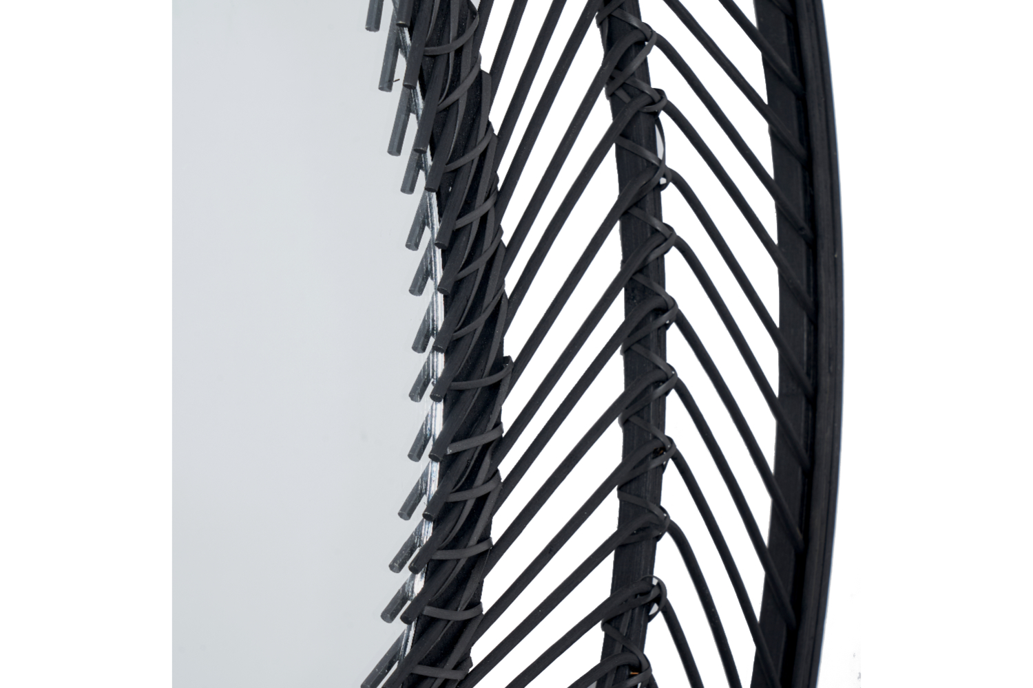 Elevate your décor with this eye-catching on-trend mirror made from black bamboo, woven in intricate detailing around the circular glass. Ideal for a Scandi-style interior, this mirror will make for an excellent statement piece on your wall. Available in two different sizes.