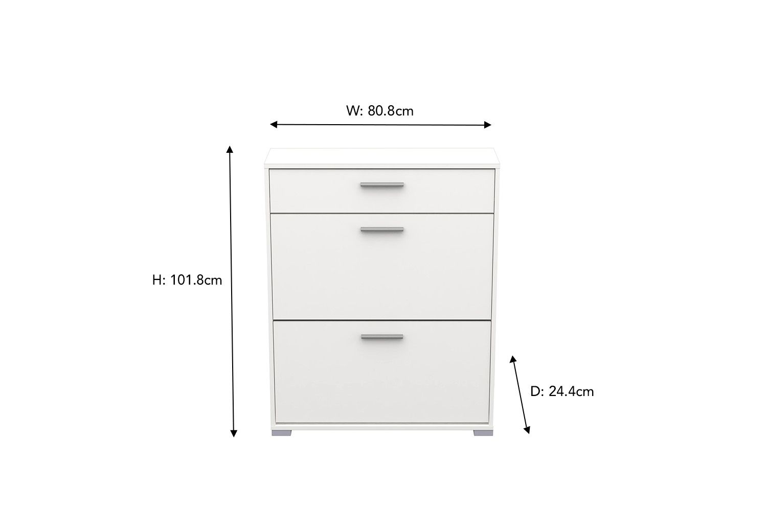 Lower the footprint in your home with the Izzy shoe storage cabinet – helping you keep your home clutter free! This white slim shoe cabinet is perfect for those of us with lots of shoes and not enough space to store them. With two storage compartments and an added drawer, it has plenty of space to house your shoes in an easily accessible place. Made from wood with a matte finish, this cabinet is sure to be an essential item in your home for years to come.