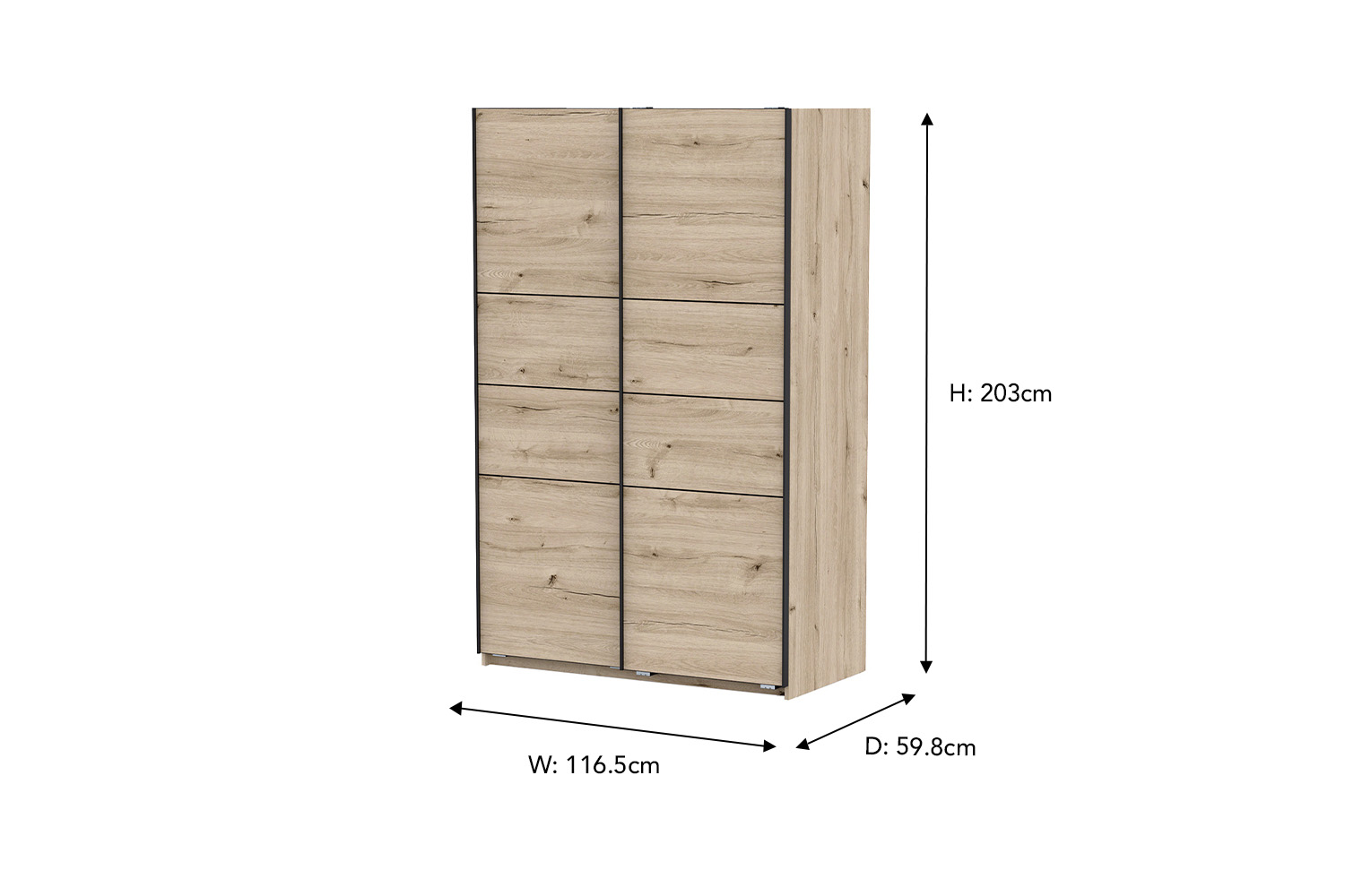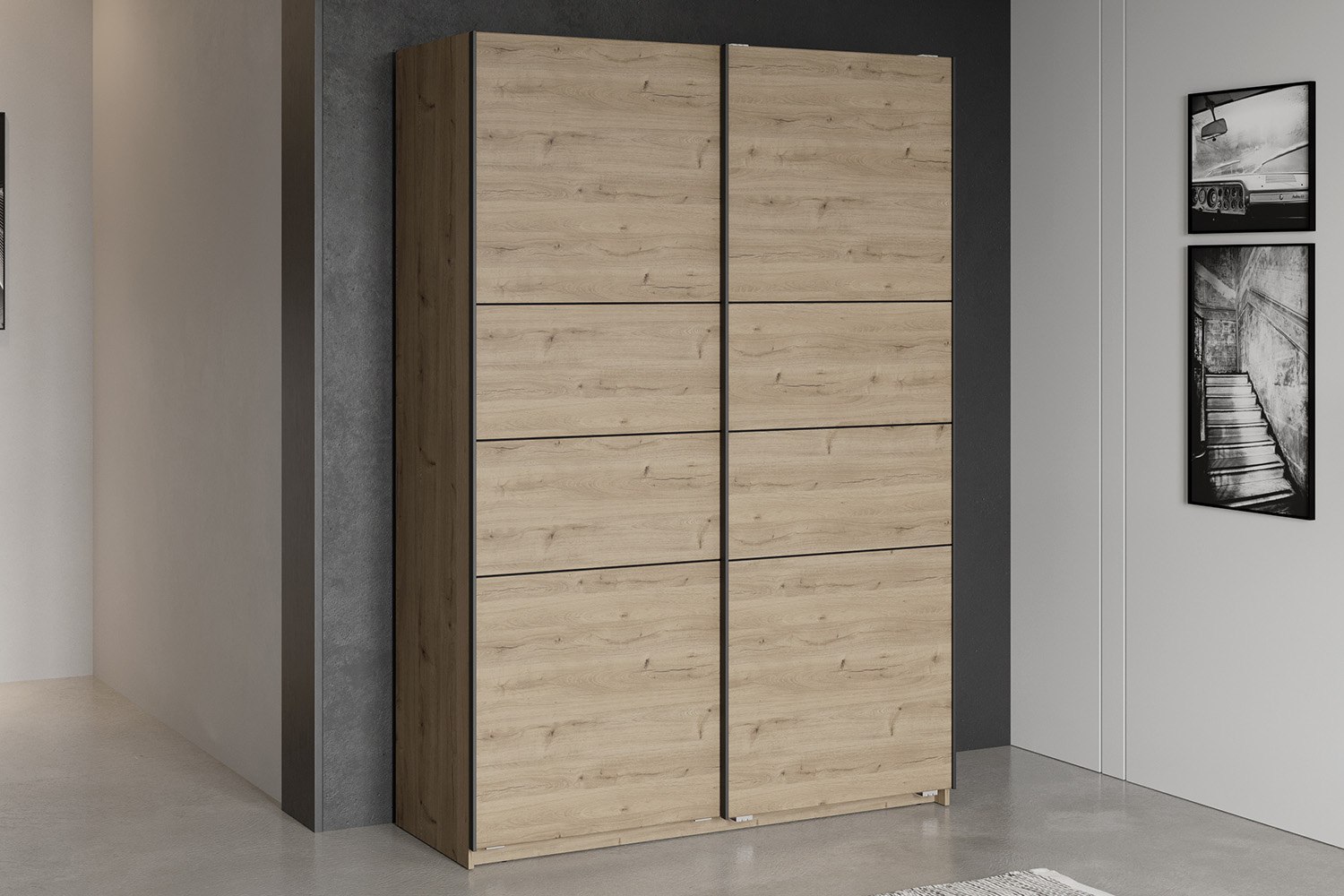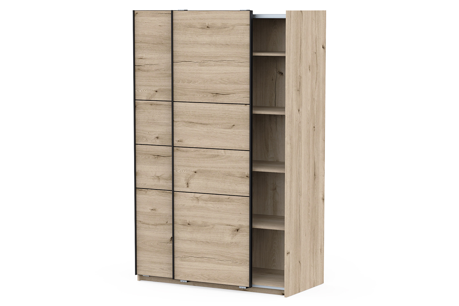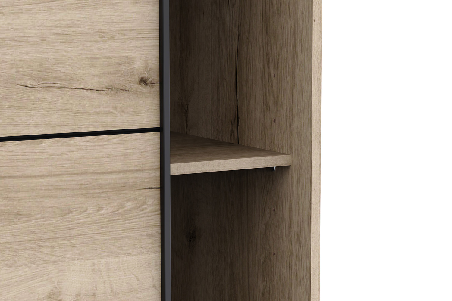 Sleek and sophisticated, the Fast slide wardrobe gives a refined feel to any interior. Crafted from wood with a beautiful oak effect finish, it boasts an inviting design that blends seamlessly to any décor. Offering ample space for all your clothing essentials, it includes two cupboards, one with two hanging rails and a shelf, and the other has five shelves. It features a slide door for ease of access as well as allowing you to optimise your space in rooms where it might be limited.