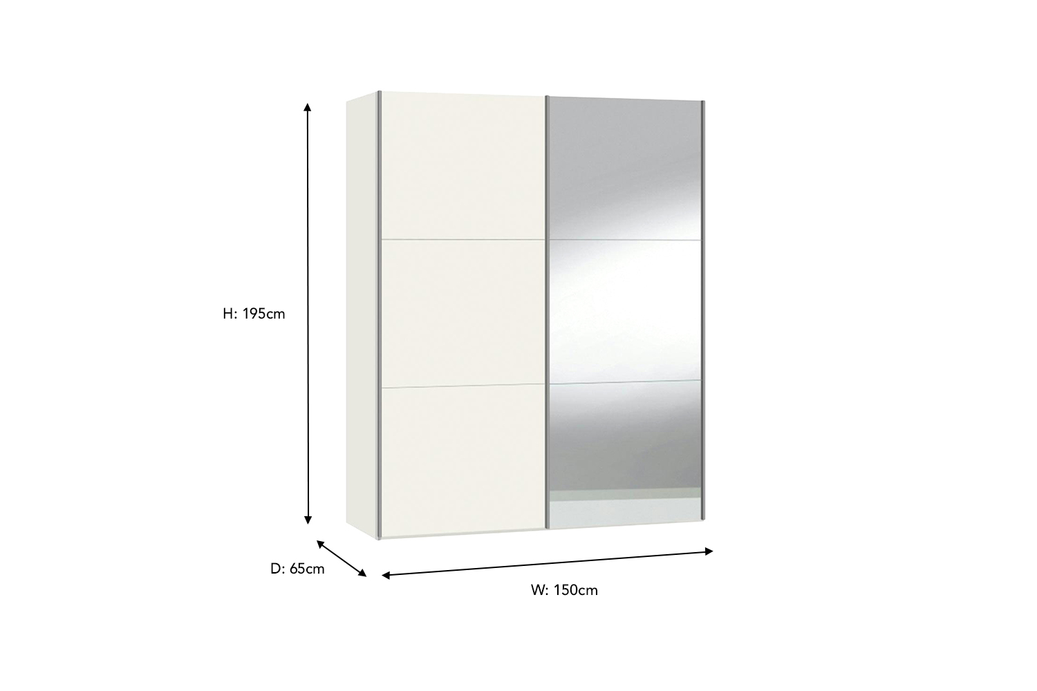 The Geneva wardrobe measures W150cm x D65cm x H195cm.