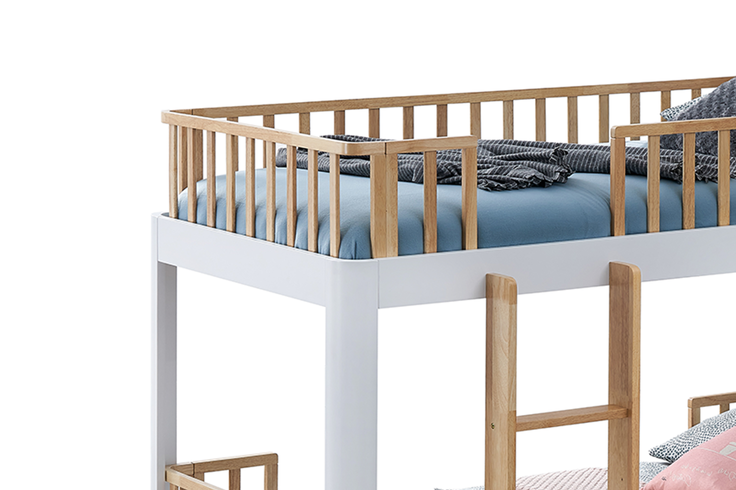 Durable, stylish, and versatile, the Poppy bunkbed is the perfect companion for any child’s bedroom. Made entirely from wood this bed is designed to be a focal point in their room for years to come. Making the most out of any space, it features two single beds, the perfect solution for a growing family. It includes a guard rail to ensure your child’s safety and a ladder for ease of access. It’s available in multiple different colours so you’ll find the right fit for you.