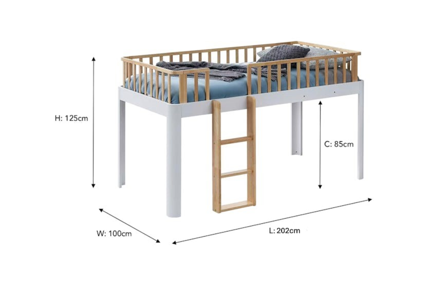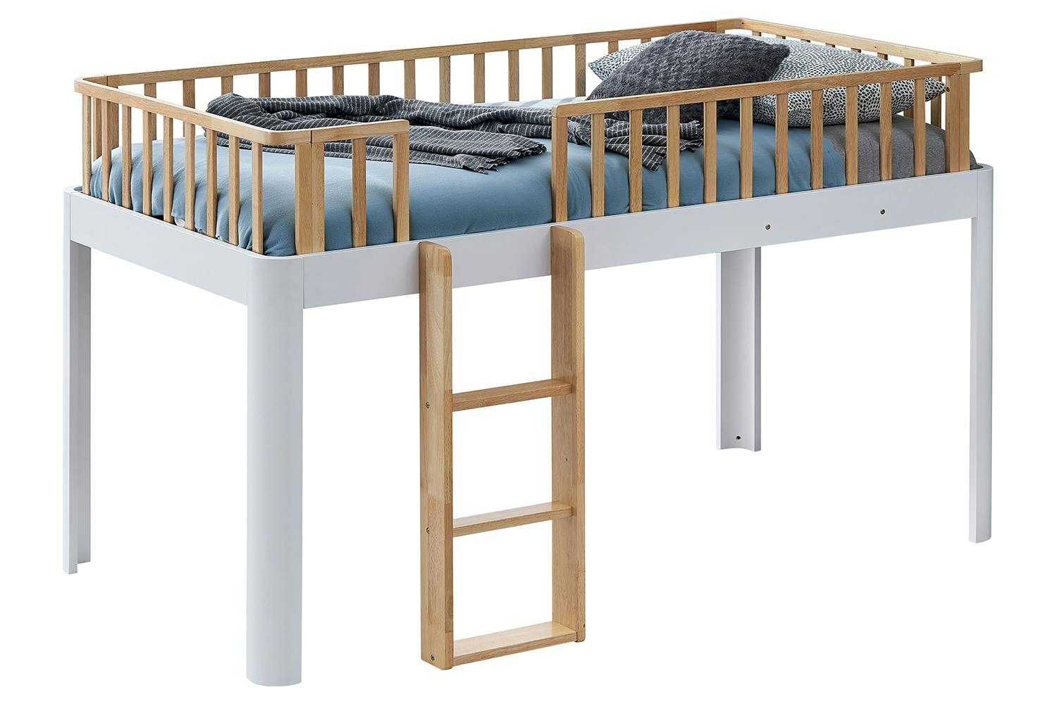 Durable, stylish, and versatile, the Poppy loft bed is the perfect companion for any child’s bedroom. Made entirely from wood this bed is designed to be a focal point in their room for years to come. Making the most out of any space, this bed is raised high off the ground to allow for more room for storage. It includes a guard rail to ensure your child’s safety and a ladder for ease of access. It’s available in multiple different colours so you’ll find the right fit for you.