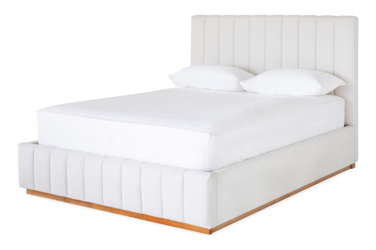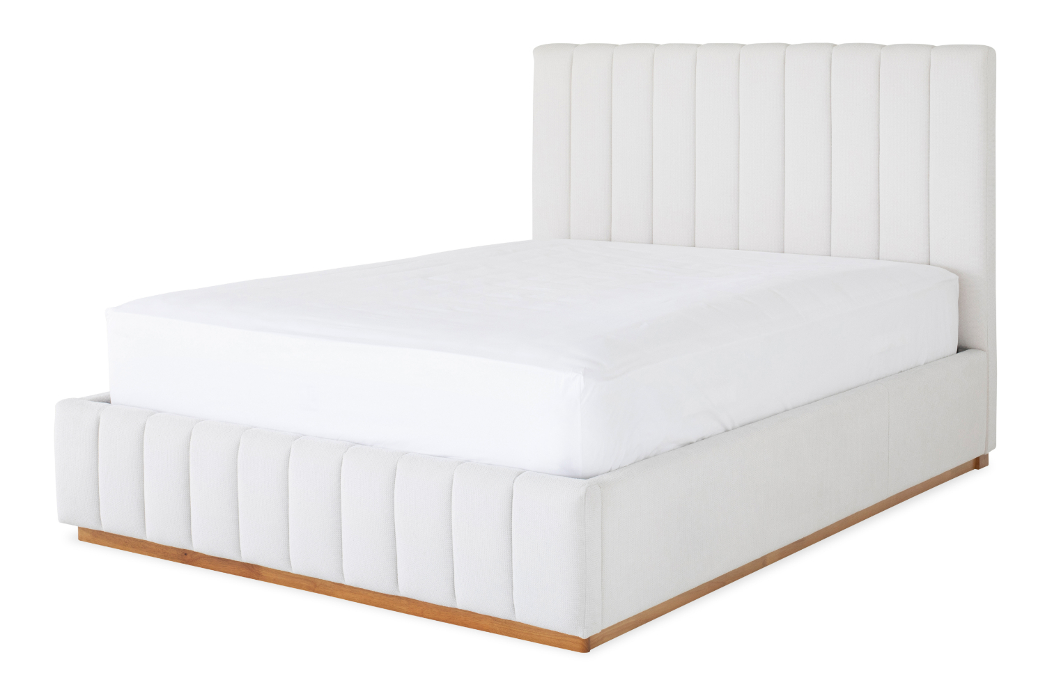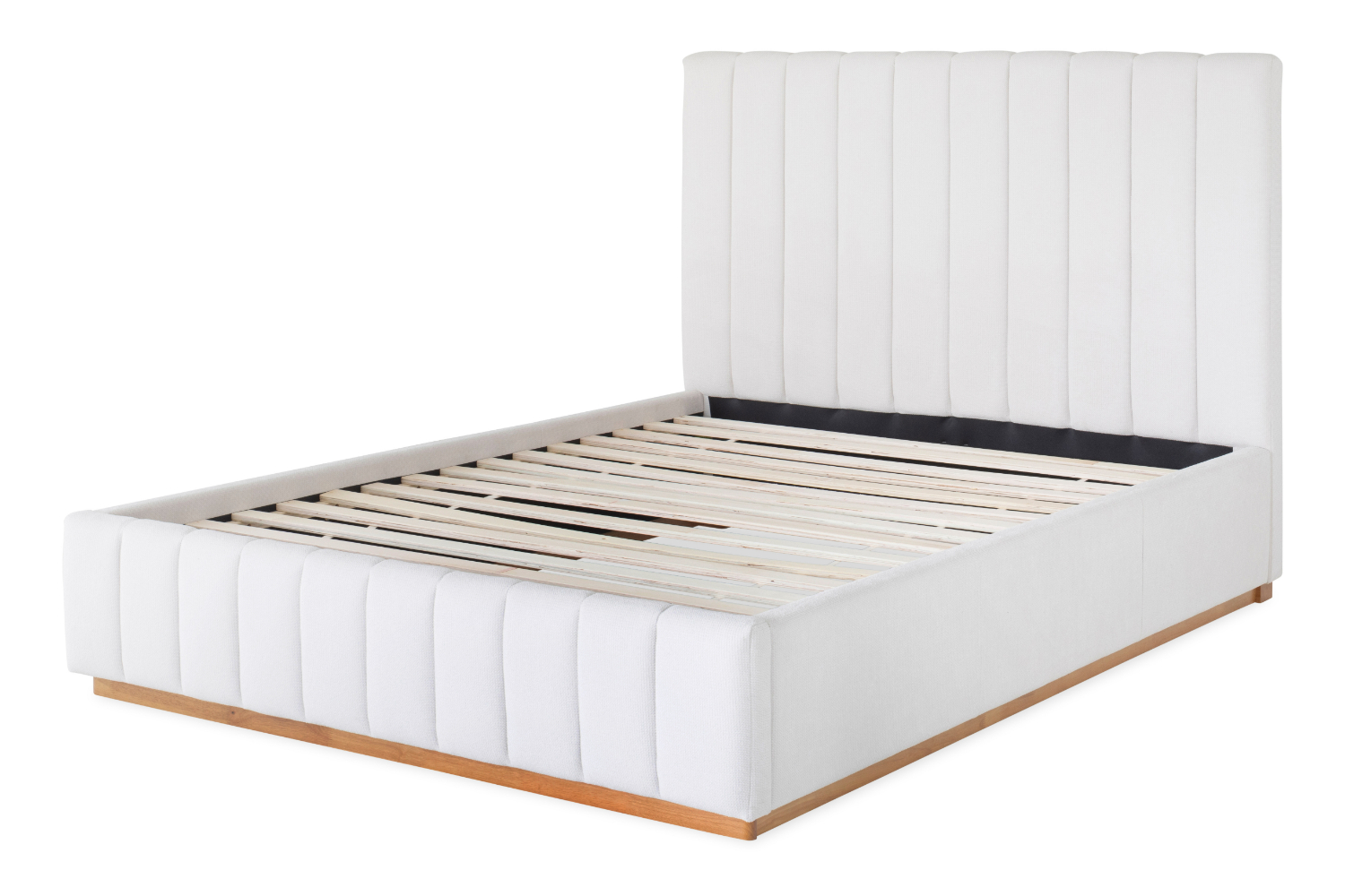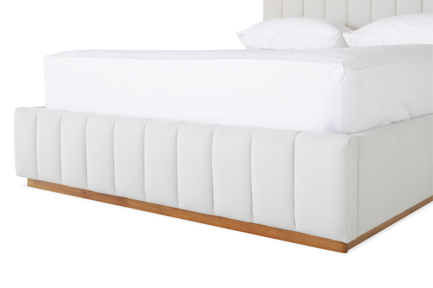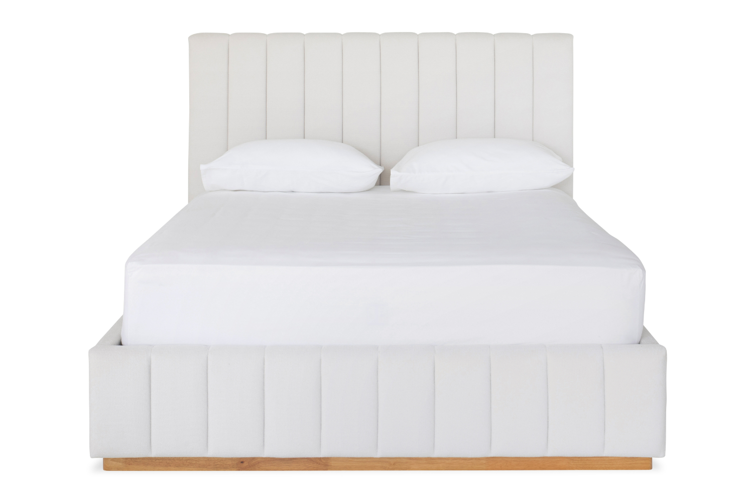 Combining comfort and opulence, the headboard features a padded linear design ideal for leaning against on those lazy Sundays while reading or watching TV. The frame is upholstered in a soft linen fabric in a muted oat hue that radiates warmth while complementing your bedroom décor. Both stylish and supportive, this frame includes a slatted base with centre support and multiple support legs, guaranteeing you a supportive and sound sleep.