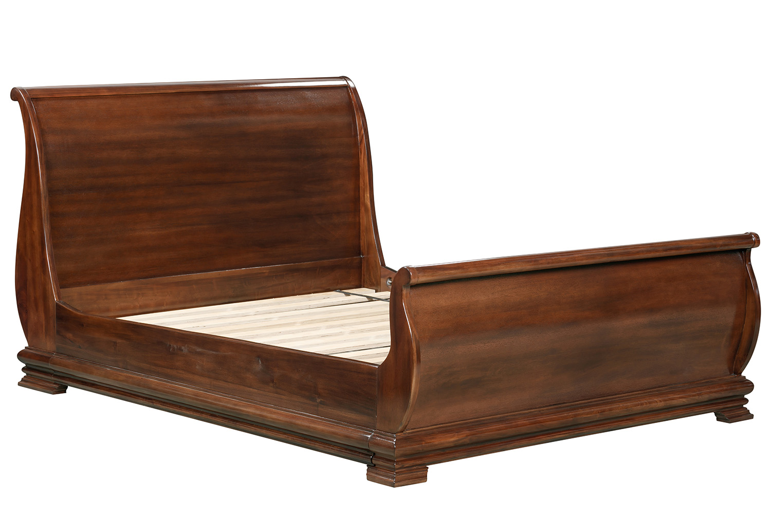 The Deauville bedframe features a dramatic headboard and impressively styled sleigh frame with elegantly rolled foot and headboards. The stunning lacquered finish not only enhances the natural beauty of the wood grain but also makes for a practical and hardwearing finish. Built for comfort and long-lasting durability, this bed frame is the perfect mix of elegance and functionality for your home thanks to the hardwood and wooden slatted base. Give your bedroom the ageless opulence it deserves with the Deauville bedframe.