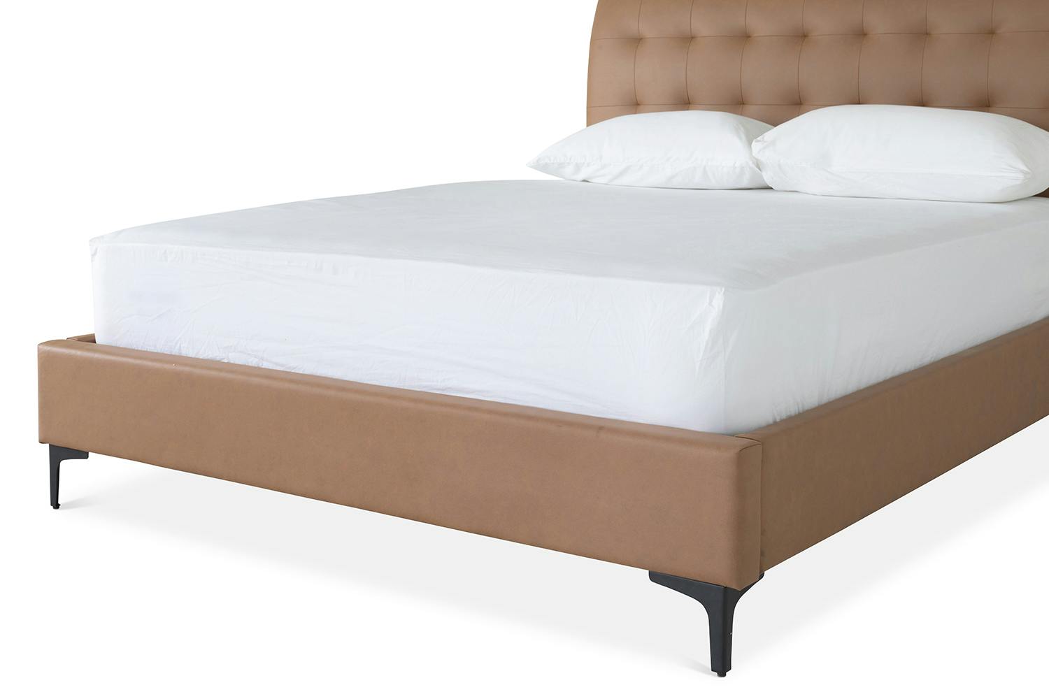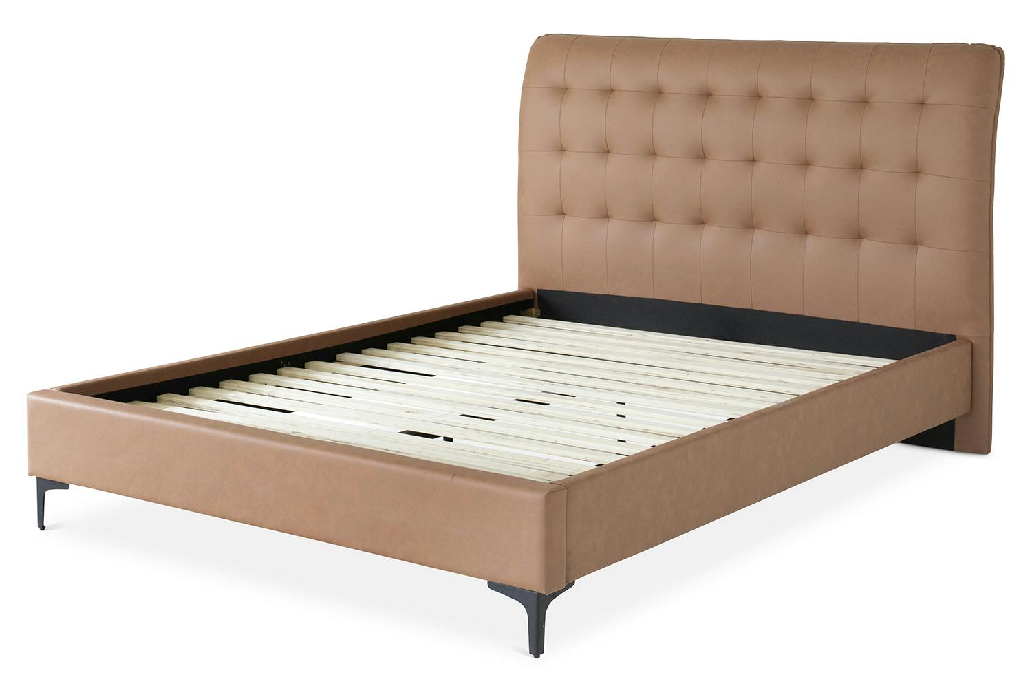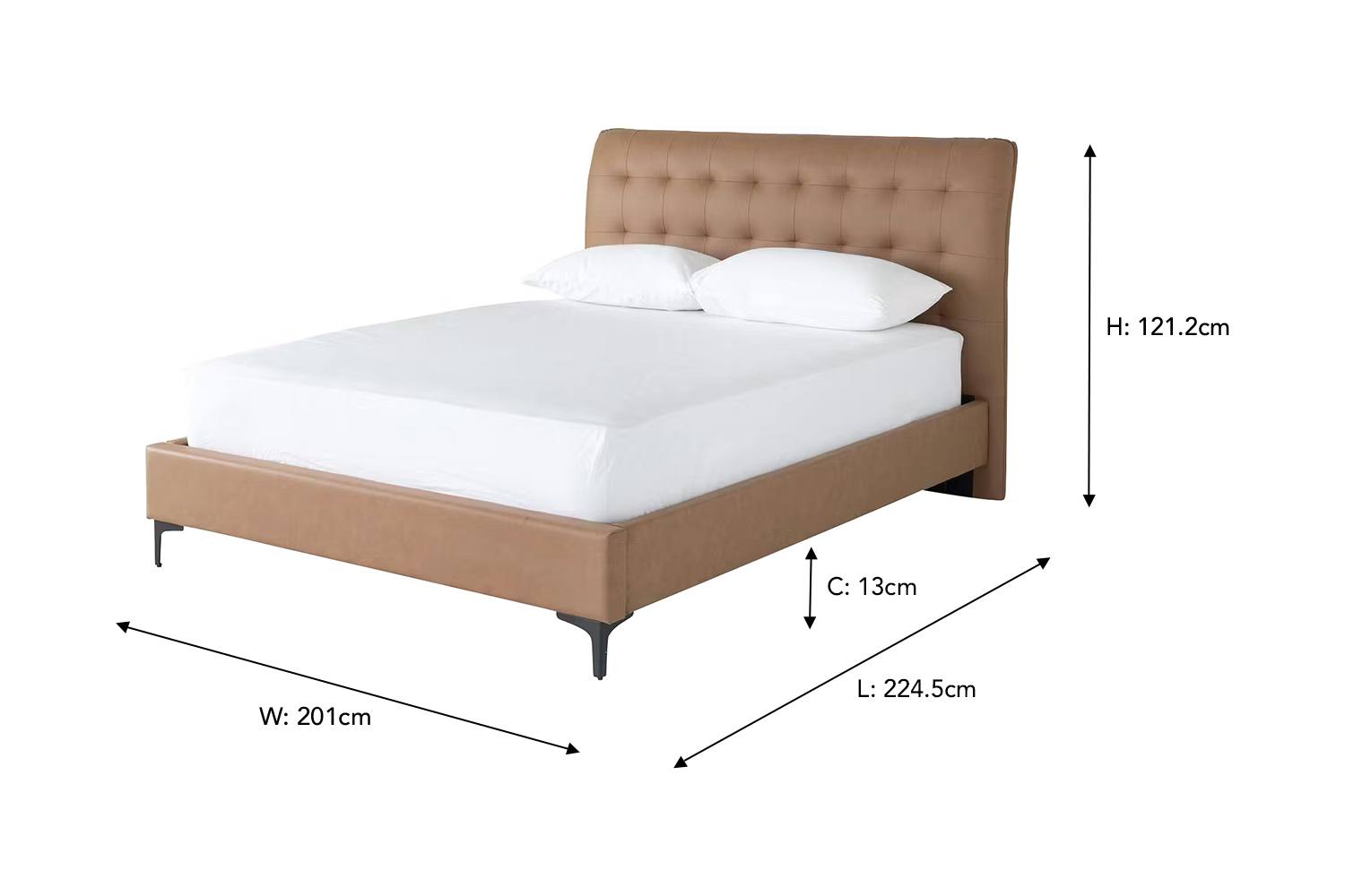 With so many eye-catching elements the Lewis bedframe is sure to elevate your bedroom décor. With features such as a shapely curved headboard with button back detailing and the sleek black metal legs, this piece radiates that contemporary look and feel. It has a centre supporting rail for support and durability ensuring this will be a staple in your home for years to come.