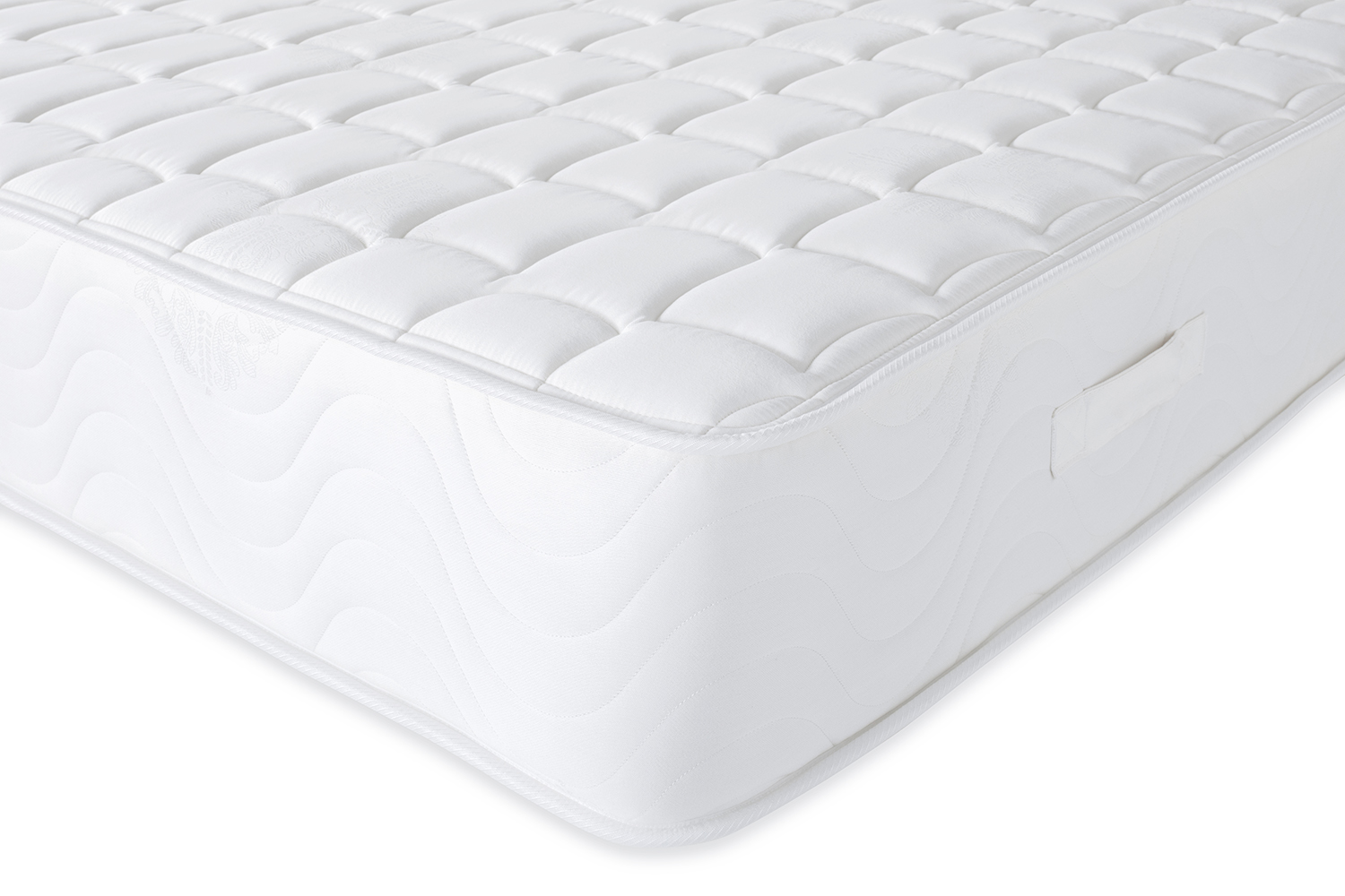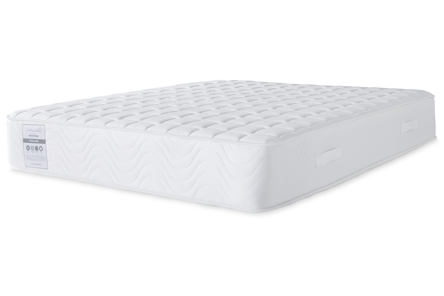 The Emerald mattress is complete with a micro-quilted border and flag stitched handles. Available in different sizes.