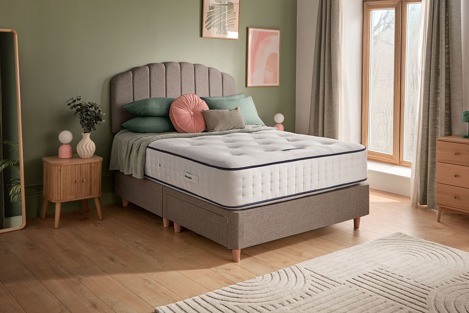 It all starts with the base of 1000 pocket springs that react independently of each other to weight applied for a much more balanced support. Thanks to the luxurious