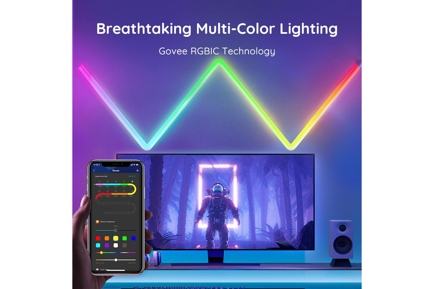 Our patented RGBIC tech lets Glide display up to 57 colors at one time and 16 million colors total, allowing for beautiful color combinations and flowing multi-color effects.