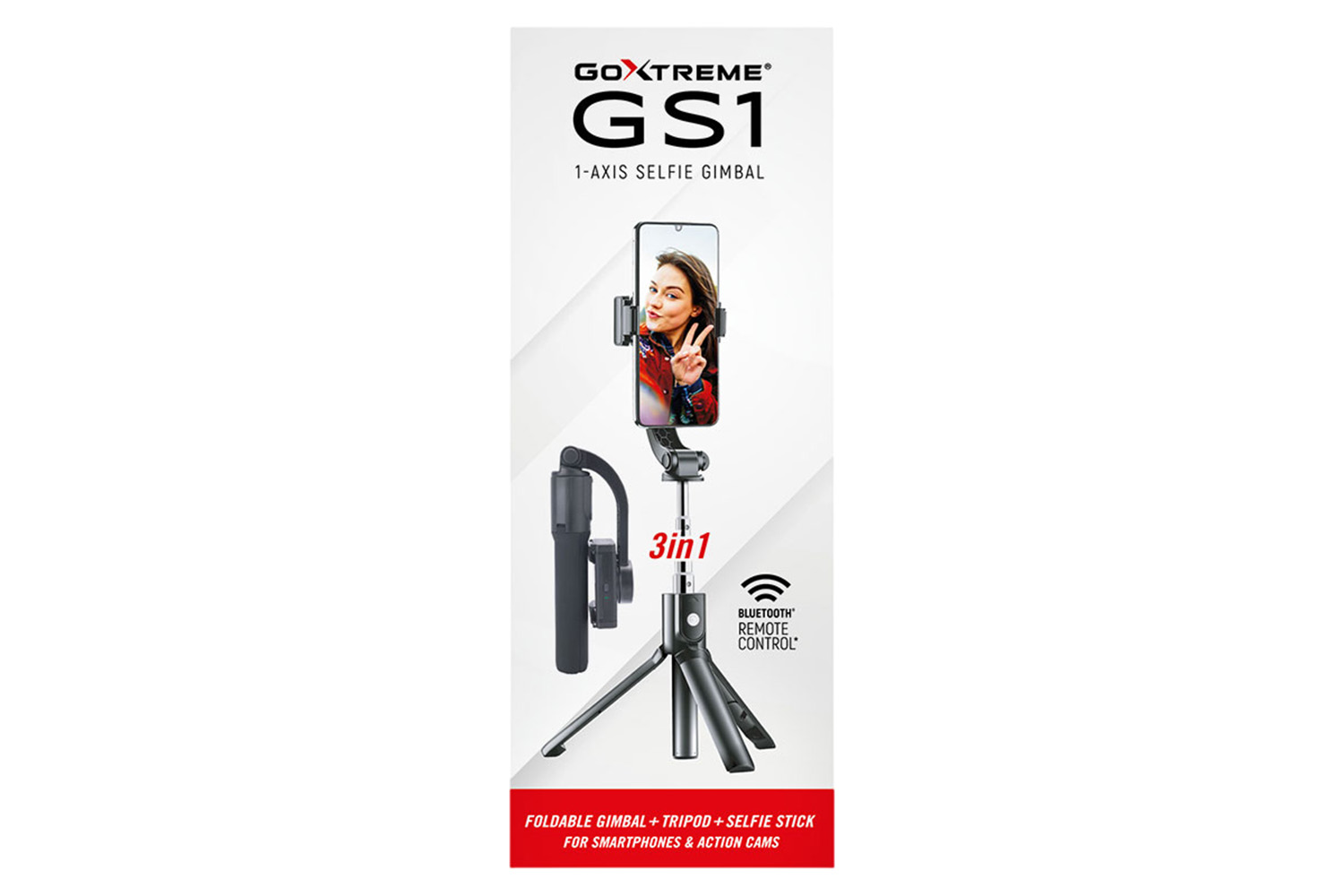 The GS1 is a 1-axis gimbal that combines three functions in one unit: it is an stabiliser with selfie stick, tripod and removable remote control.