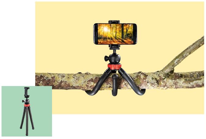Breathtaking smartphone photos from spectacular perspectives at unusual places. This bending tripod gives you the innovative flexibility to frame the perfect shot. The Flex tripod bends up to 360° so that you can secure it to any object.