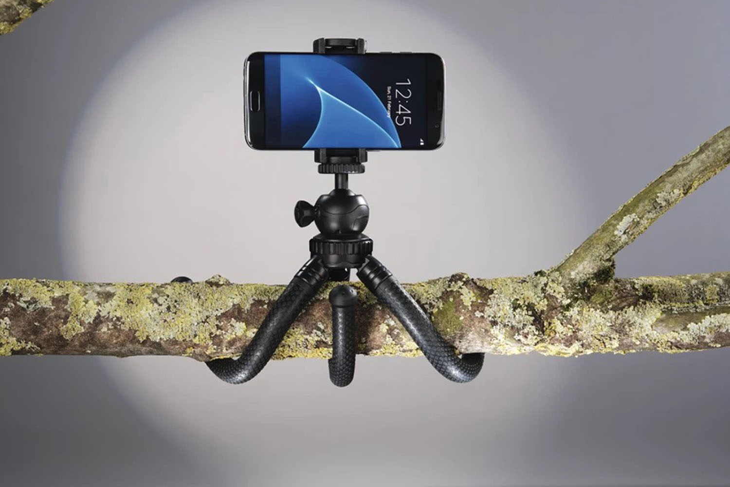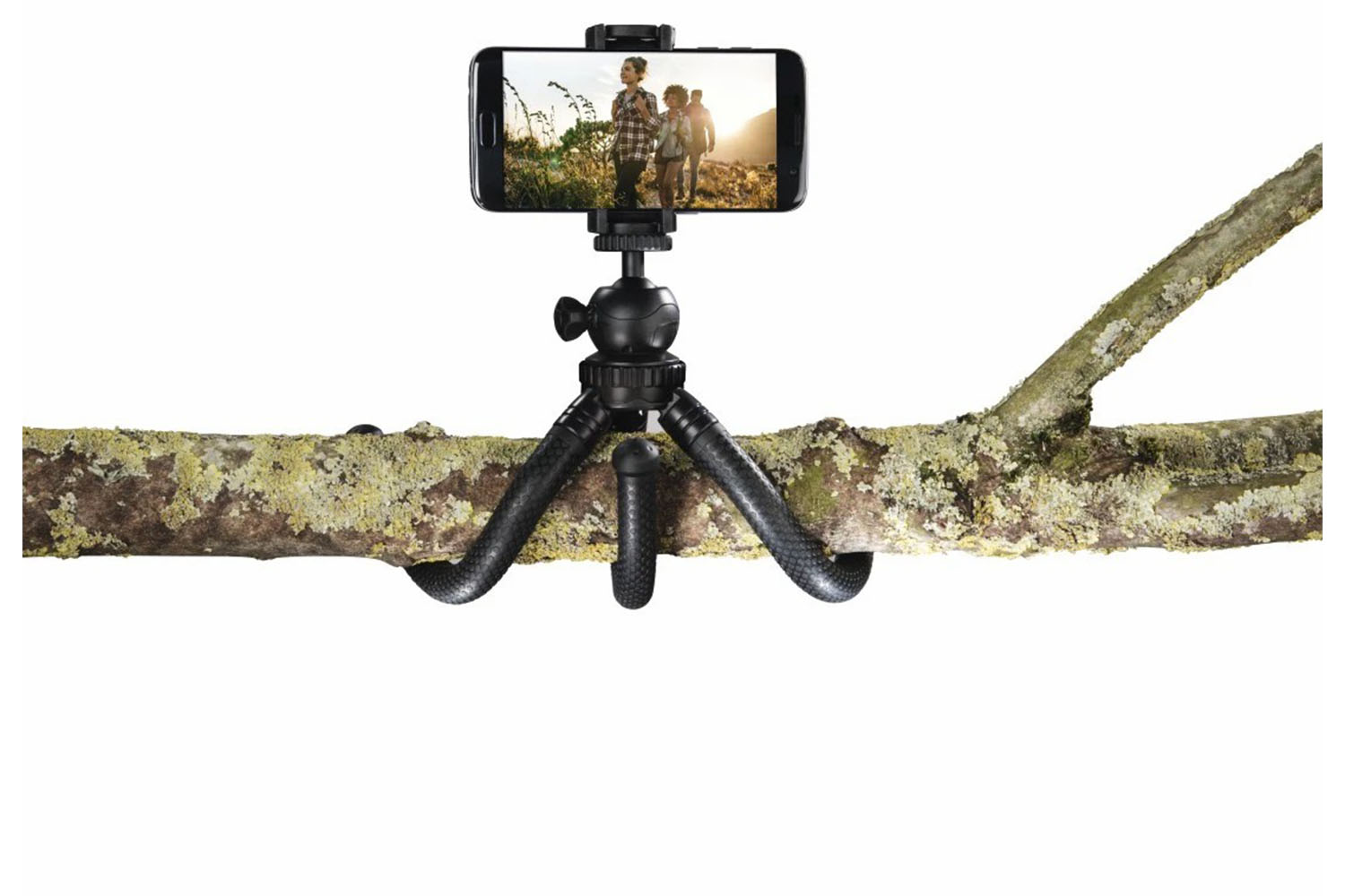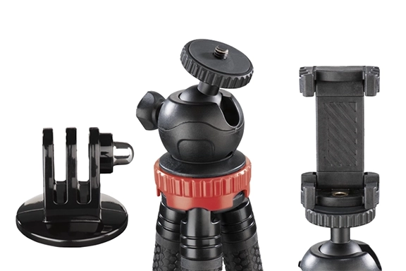 - Flexible camera tripod for exceptional recordings with a smartphone, GoPro and photo camera