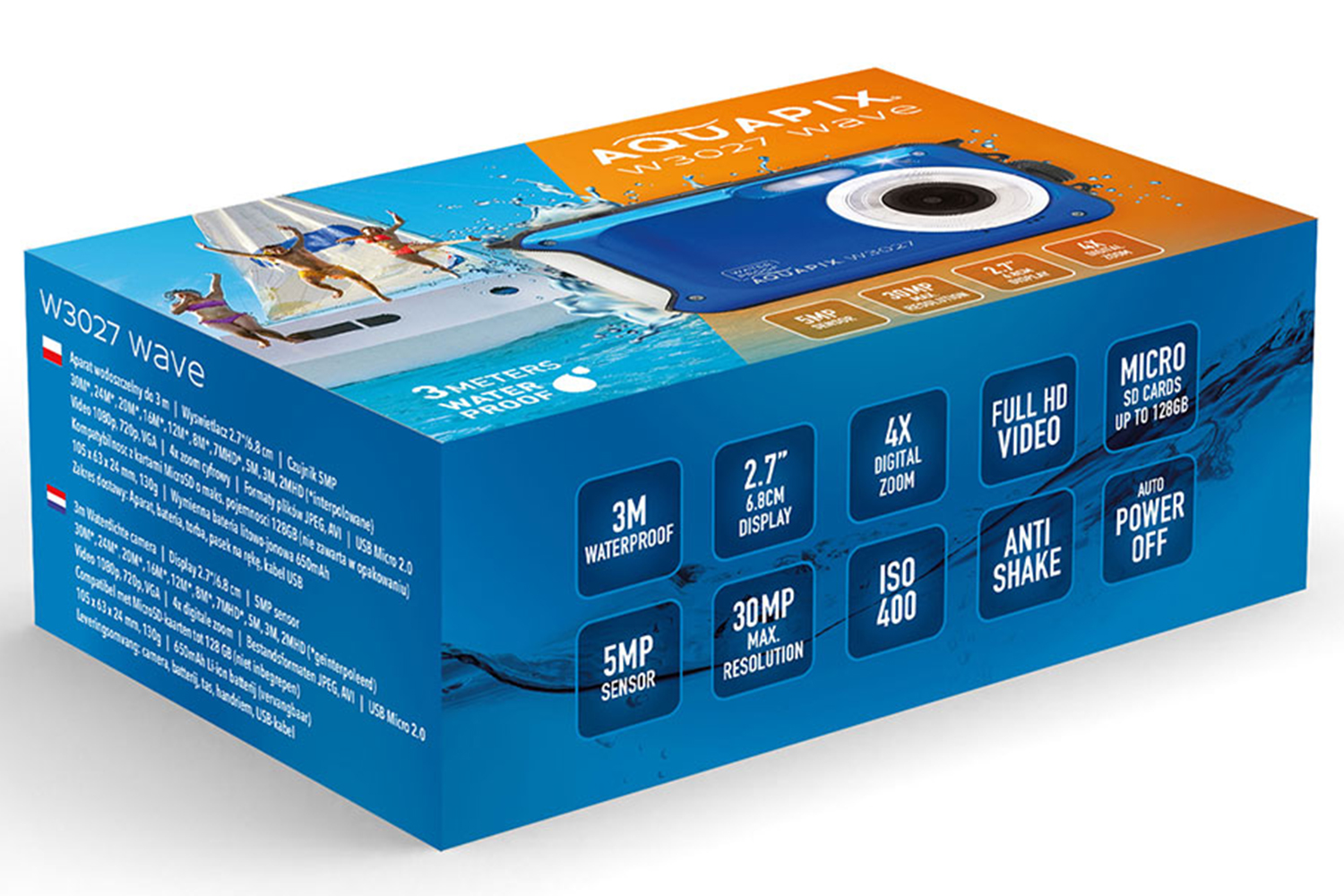 Whether you're snorkeling, relaxing on the beach, or making a splash at the pool, Aquapix W3027 Wave lets you capture your best moments anytime, anywhere. This rugged underwater camera is waterproof up to 3 meters, making it the perfect companion for all your water-based adventures.