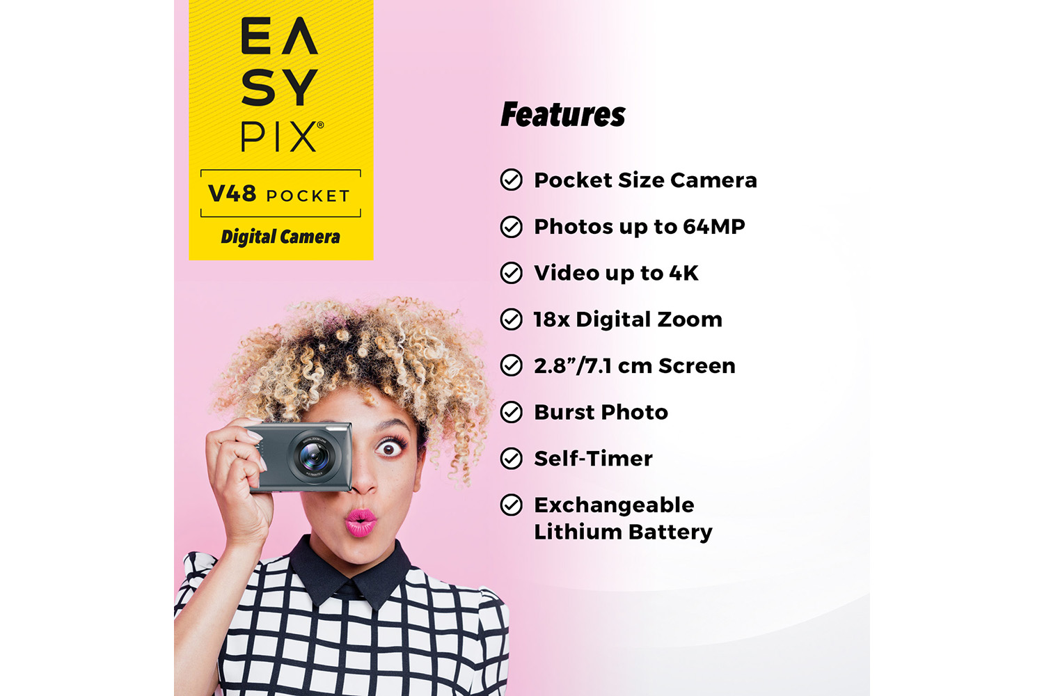 The Easypix V48 Pocket is the perfect digital camera for anyone who wants to be ready to capture special moments on the go. With its slim and compact design, it fits in any handbag and is the ideal accessory for travel or spontaneous adventures – the V48 Pocket is always ready to hand and looks great too.