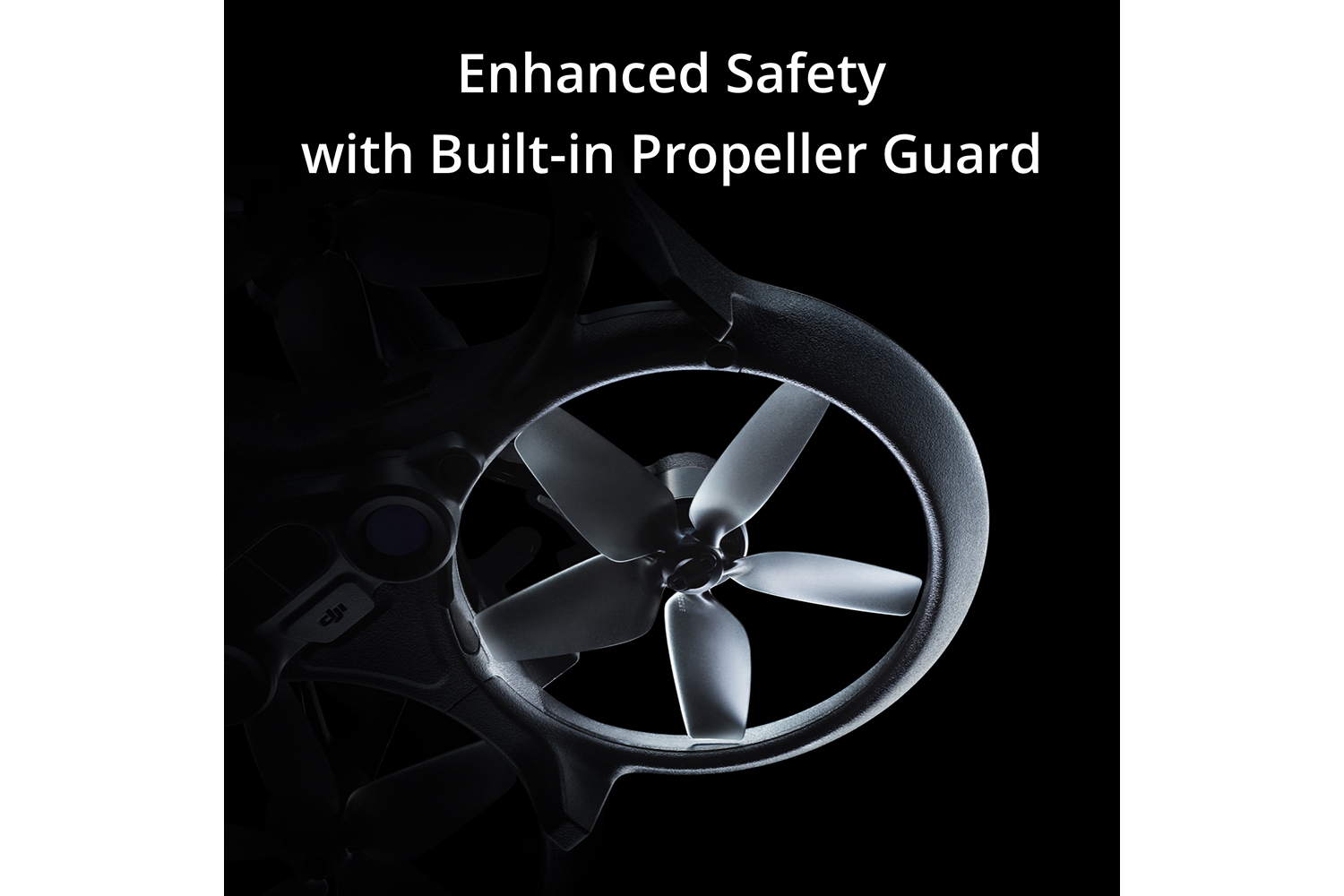 Avata features a built-in propeller guard, an Emergency Brake button, and downward sensors for next-level safety and low-altitude flight. [4][5]