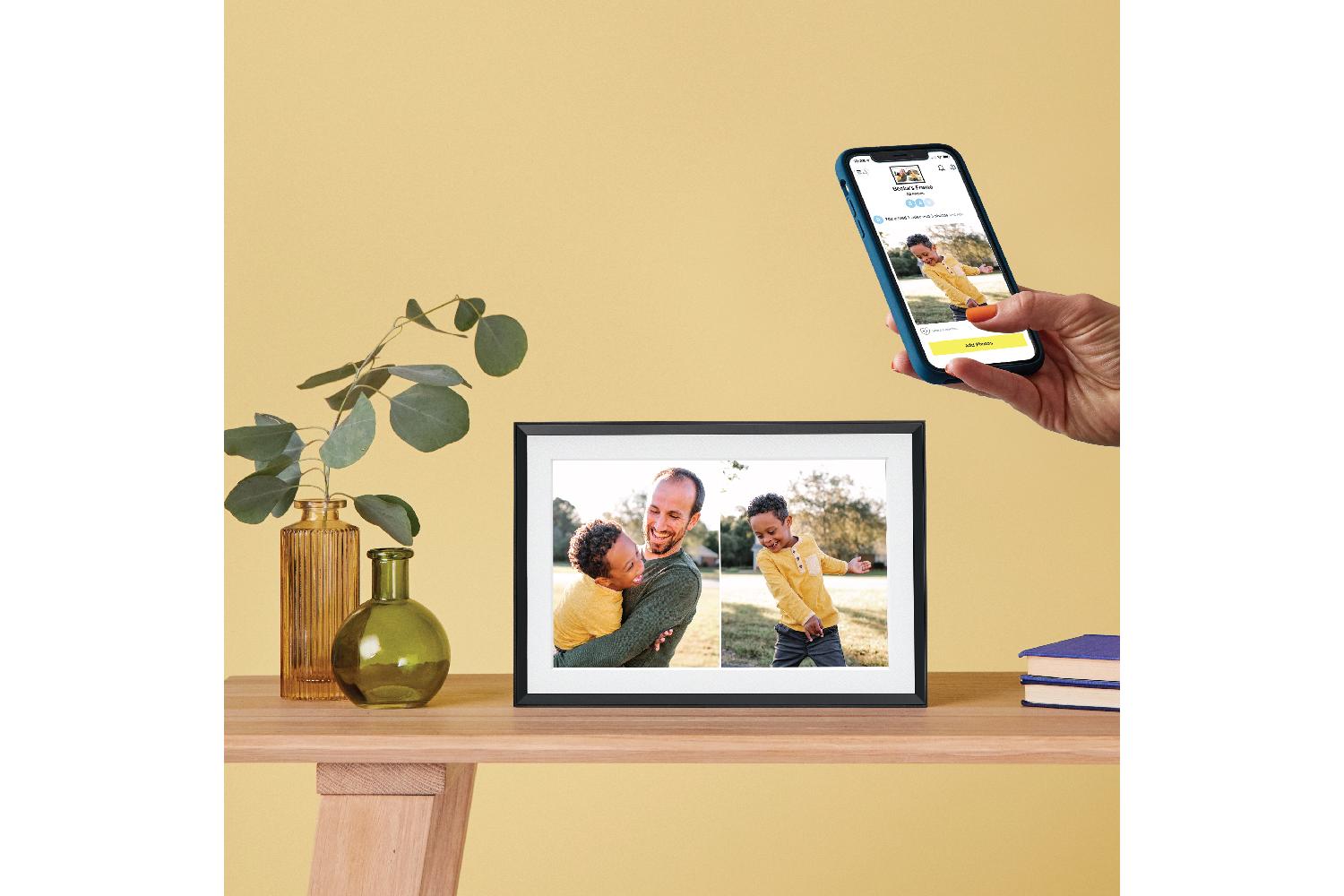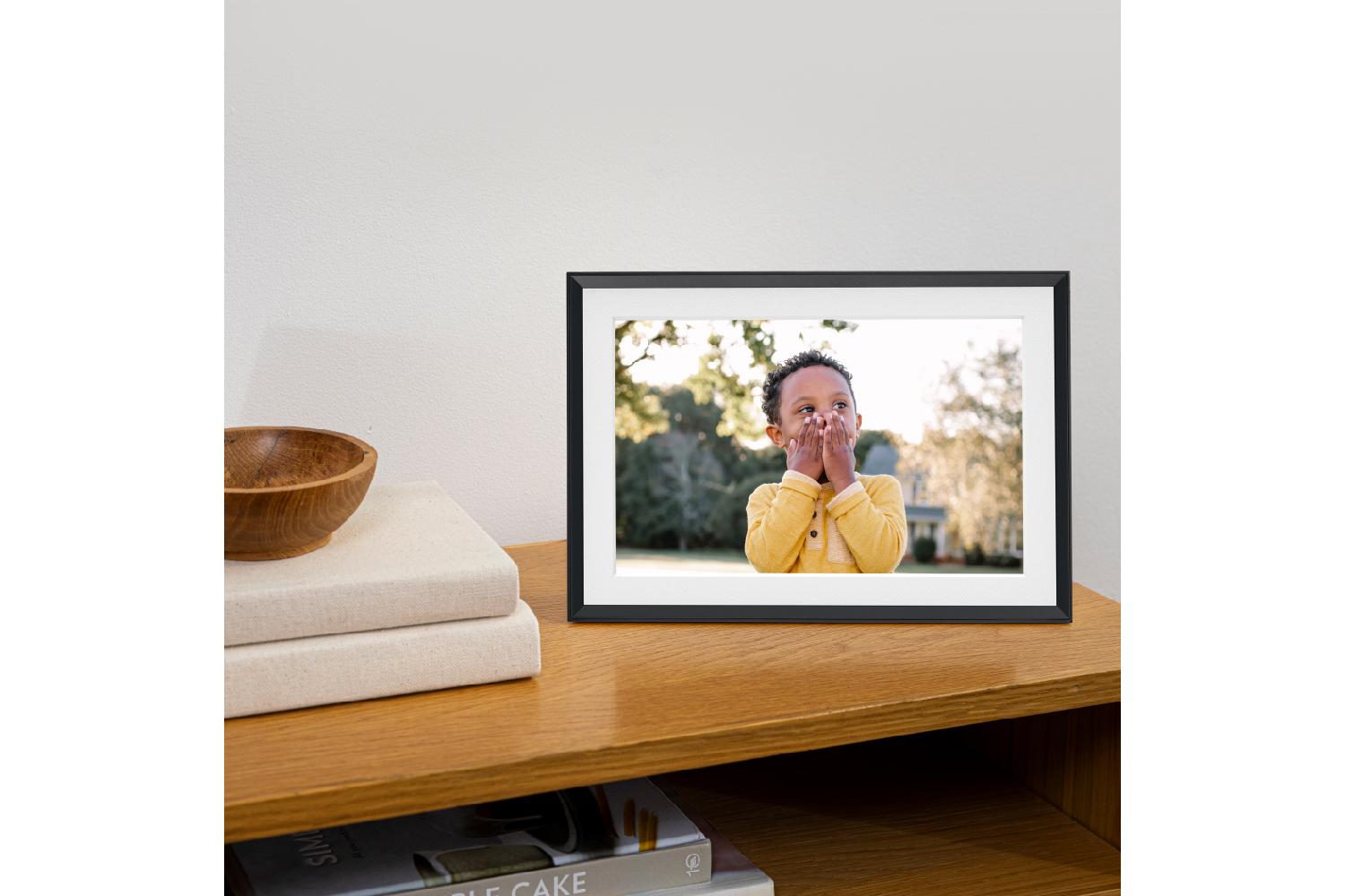 Intelligently pairs portrait-oriented photos with Photo Match. Adjusts photo brightness with auto-dimming technology, shutting the frame off at night. Automatically manages photo cropping and curation with smart features.