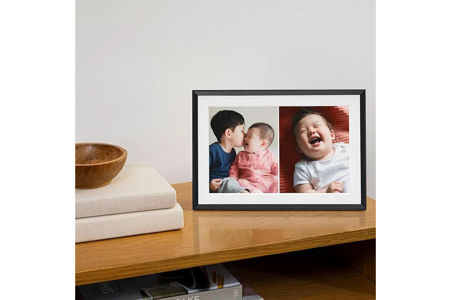 Send photos from your phone to Carver Mat, our top-selling WiFi-connected frame. Enjoy all your favorite moments on Carver Mat's 10.1" matted landscape display, and watch as it intelligently pairs complementary portrait photos side-by-side. Add unlimited photos and videos, and invite all your loved ones to fill the frame using the free Aura app.