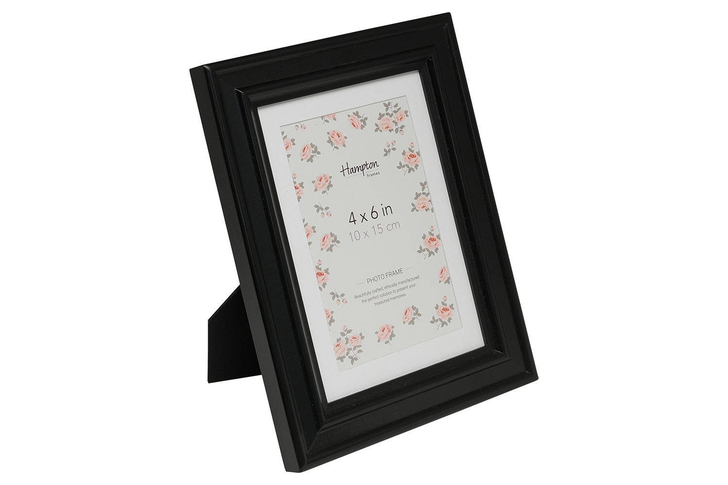 Helena 4×6 Black wood frame with a mount. Solid colour. Removal of the mount turns the frame from a 4×6 to a 5×7.