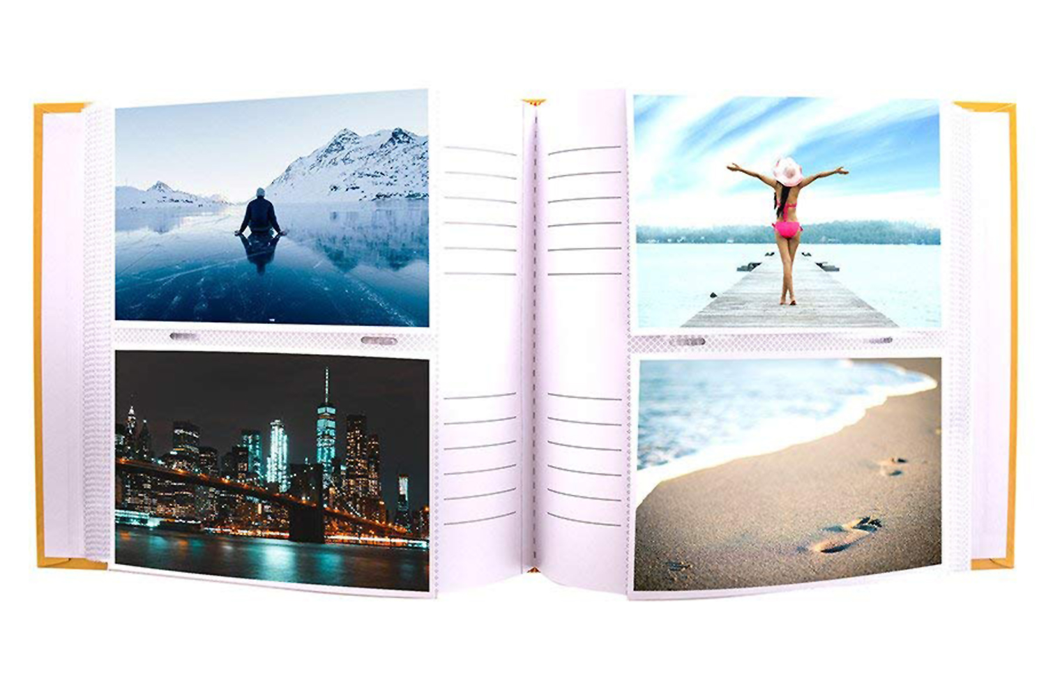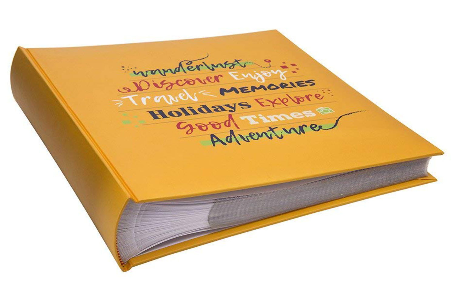 This warm yellow memo album is the perfect adventurer’s companion. The art-printed cover features a stylish word cloud filled with positive, upbeat travel phrases, Wanderlust, Discover, Enjoy, Travel, Memories, Holidays, Explore, Good Times, Adventure. This album is part of the Kenro Holiday Series, which contains albums to suit all tastes and to cover all types of holiday, from the beach relaxer to the global traveller.