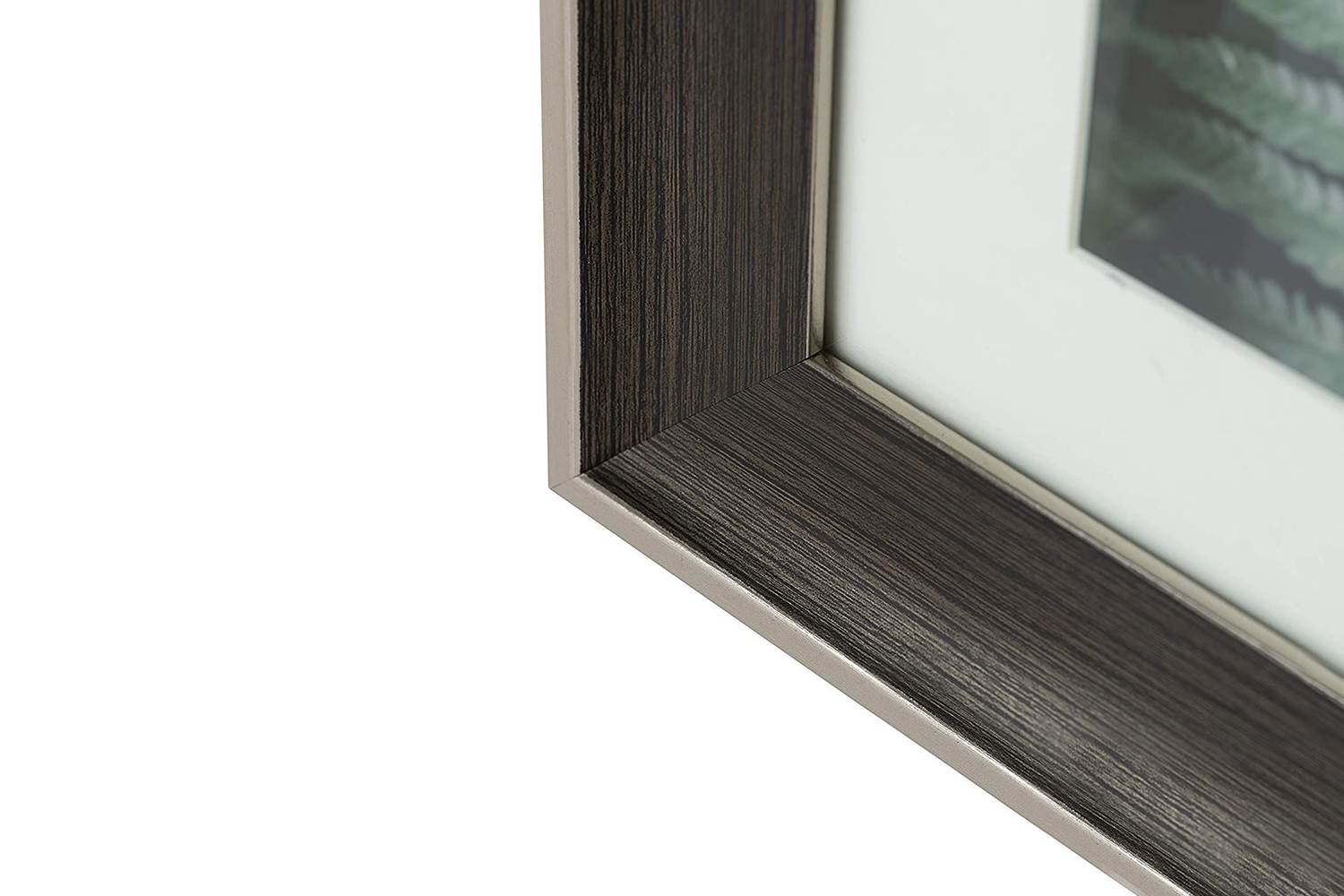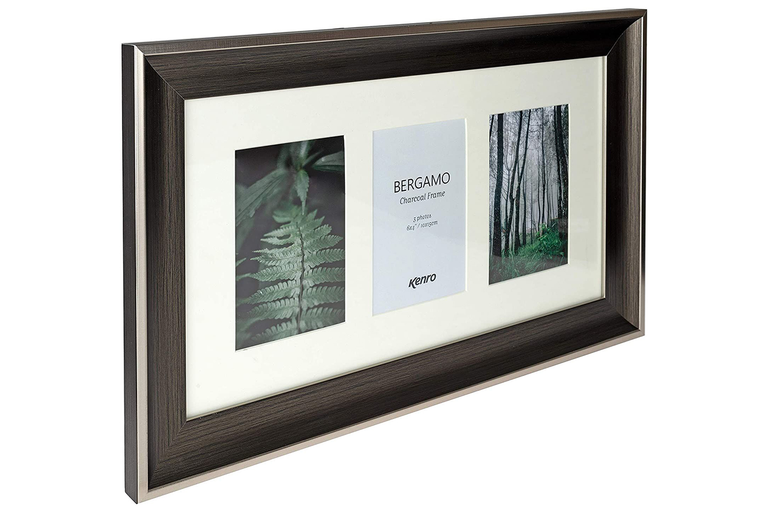 Kenro's Bergamo Charcoal series frames are a sophisticated deep charcoal brown colour with an attractive wood grain effect finish. The picture window features a barely-there silver coloured border, and the exterior of the frame is finished in a matt silver-coloured surround.