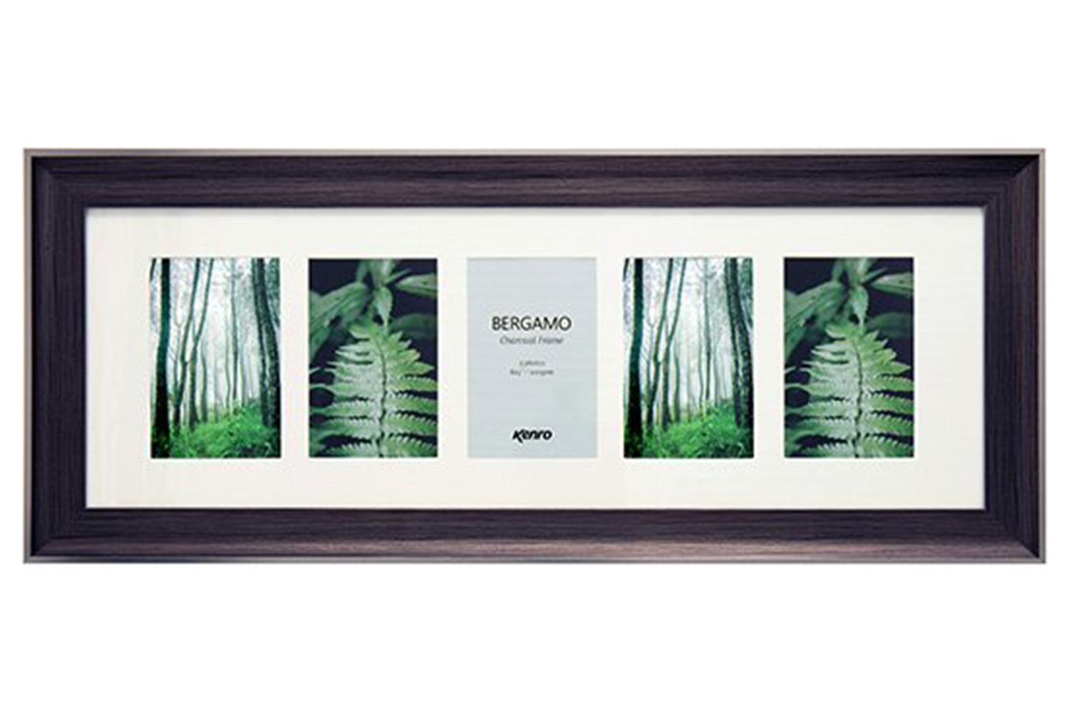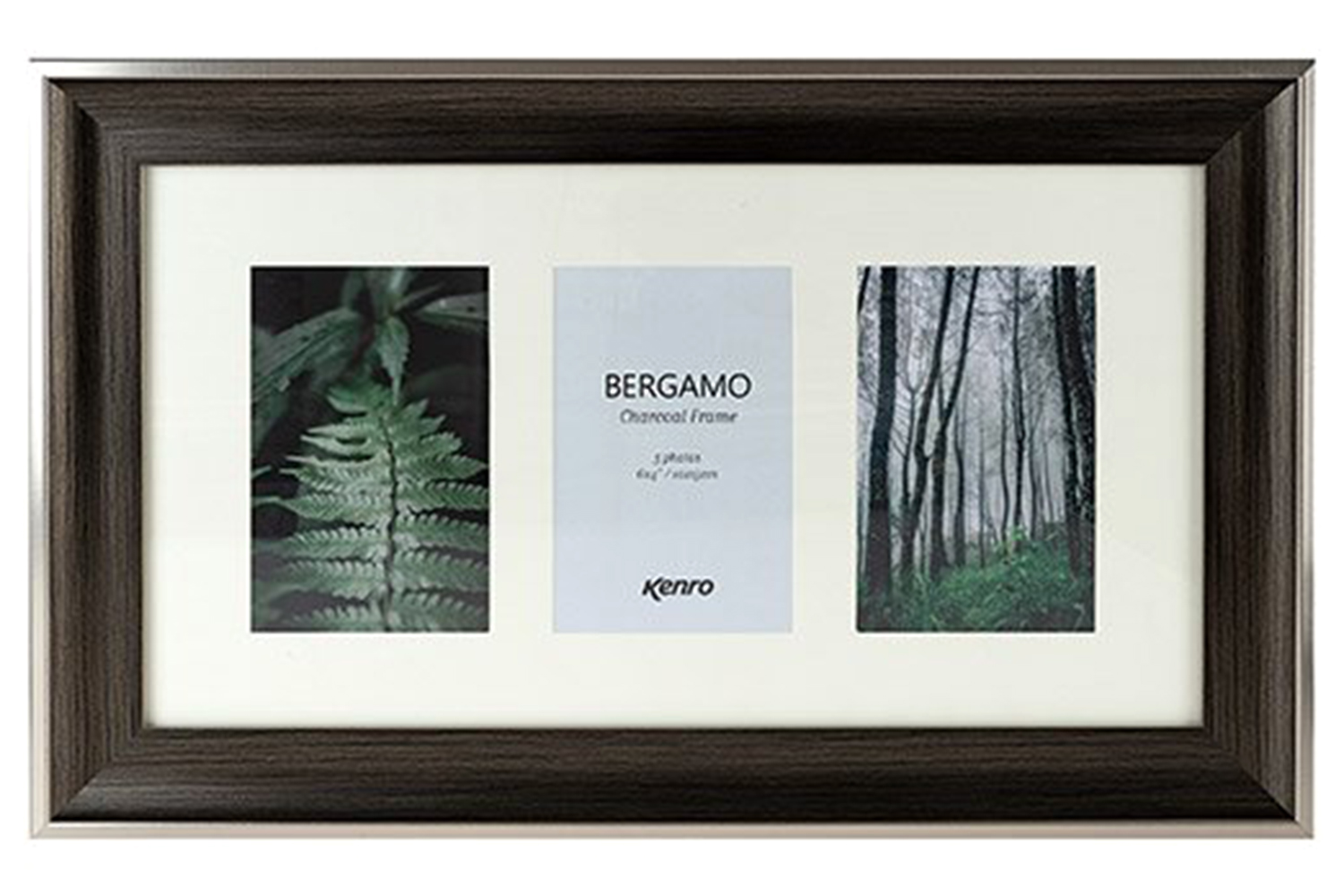 Kenro's Bergamo Charcoal series frames are a sophisticated deep charcoal brown colour with an attractive wood grain effect finish. The picture window features a barely-there silver coloured border, and the exterior of the frame is finished in a matt silver-coloured surround.