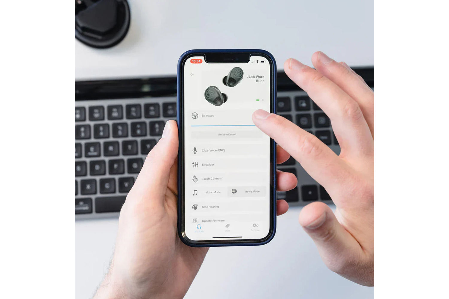 Meet the ultimate solution for the working professional: JLab Work Buds in-ear headset. With 55+ hours of total playtime, you'll have more than enough juice for all your conferences, calls and more. Say goodbye to muffled calls and hello to crystal clear communication with the detachable noise-canceling boom mic that fits either earbud. And, you'll never have to dig through your bag for your earbuds again thanks to the convenient USB-C charging dock that keeps everything organized and charged. Plus, with Bluetooth Multipoint technology and the JLab App, you can switch between devices and customize your sound to your heart's desire.