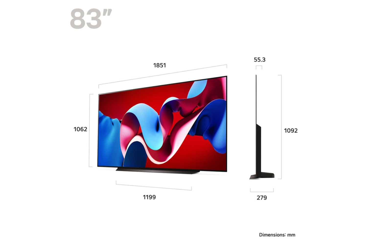 *30% brighter applies to 55/65/77/83" C4.