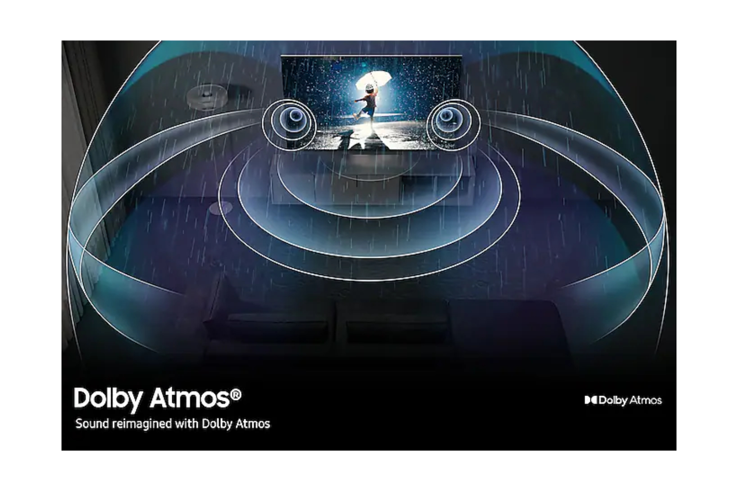 Dolby Atmos technology delivers a sound experience that you can feel around you. It creates an immersive and realistic impression of sound - when an aeroplane flies overhead in your favourite blockbuster, your TV's speakers simulate the overhead sound so it feels like it is above you. Add a soundbar to create sound as if you were in the cinema.