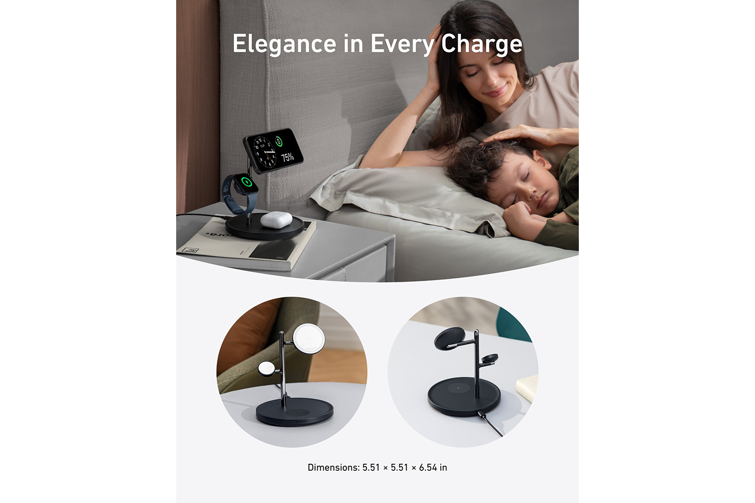 From your bedside table to your work desk, this wireless charging station is your reliable power source in every circumstance.