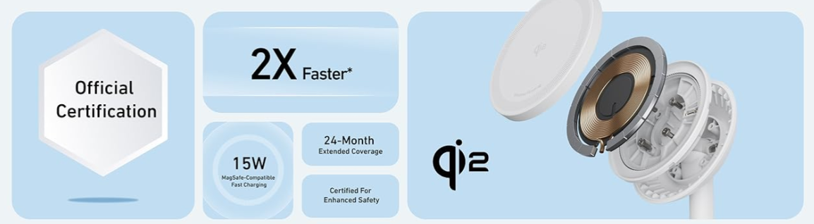 With Qi2 encryption, Anker MagGo Wireless Charging Station meets stringent charging protocol standards and authenticity verification, guaranteeing optimal charging speed and safety.