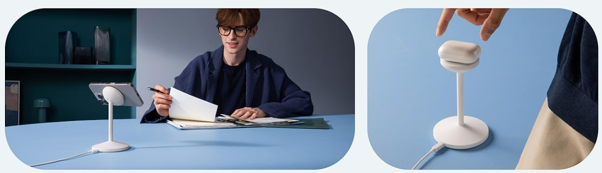 Offering broad compatibility with Apple devices, Anker MagGo Wireless Charging Station supports iPhones with MagSafe, all Apple Watch models, and a variety of earbuds with wireless charging cases.