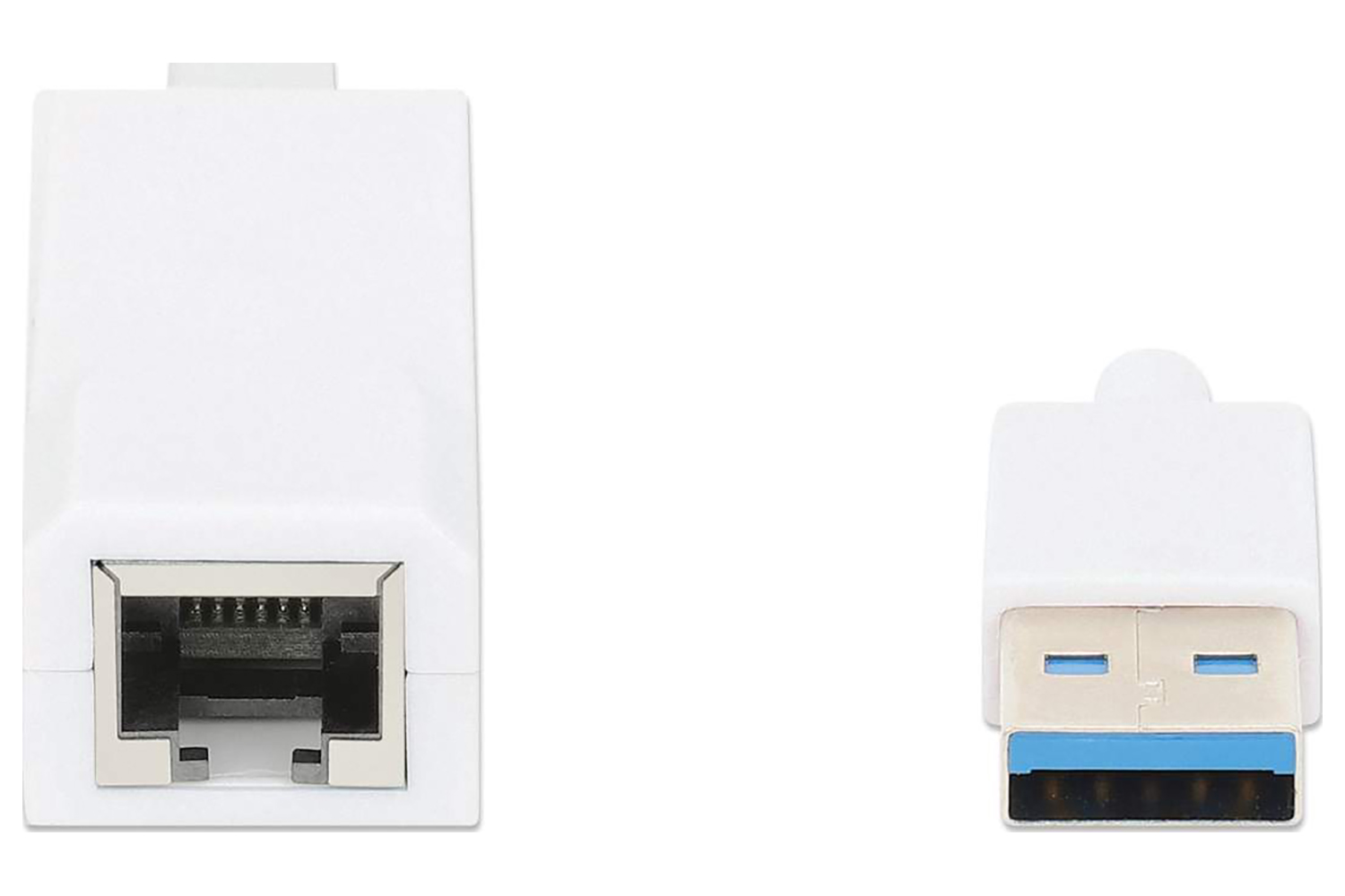 The Manhattan USB 3.0 to Gigabit Network Adapter is a compact, high-performance network adapter that allows you to upgrade your desktop or notebook computer to operate at 10/100/1000 Mbps speeds on the LAN. Because it attaches to one of your computer’s USB connectors, there is no need to open up your PC — and the user-friendly setup software makes installation quick and easy.