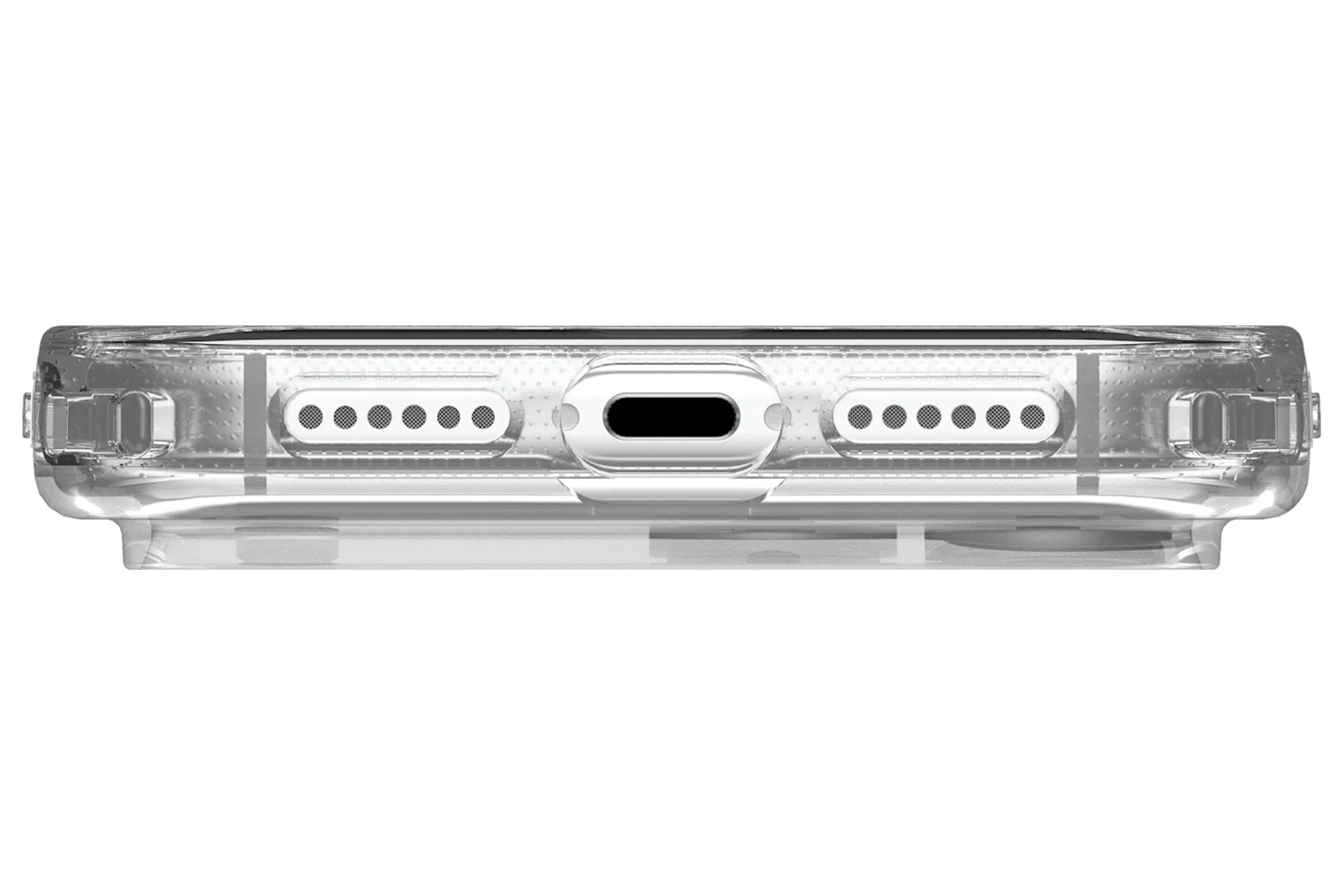 The Plyo Series Case offers stylish, everyday protection with a sleek and lightweight design. This case features a TPU shock-absorbing frame combined with a durable polycarbonate backplate, providing robust protection without the bulk. The signature UAG armor shell and impact-resistant soft core protect your device from drops and impacts, while scratch-resistant skid pads and air-soft corners add extra cushioning for enhanced safety. Anti-yellowing technology, the Plyo Series maintains lasting clarity, allowing your phone's true color to shine. Textured grooved surface around the perimeter for improved grip. The powerful built-in magnet ensures seamless MagSafe charging compatibility, making it a versatile choice for your device.