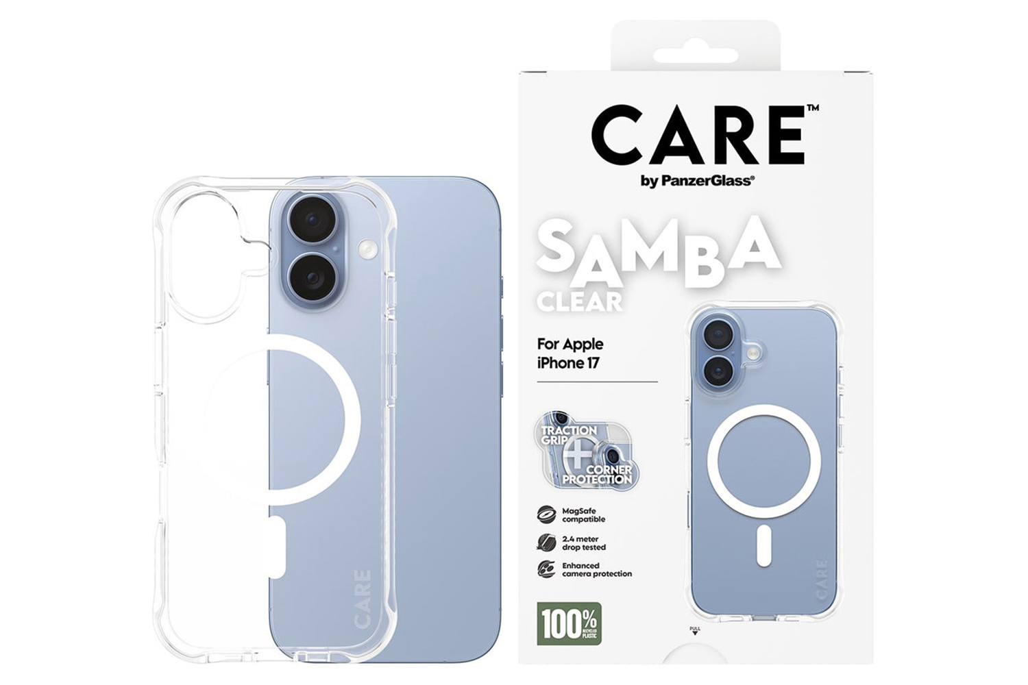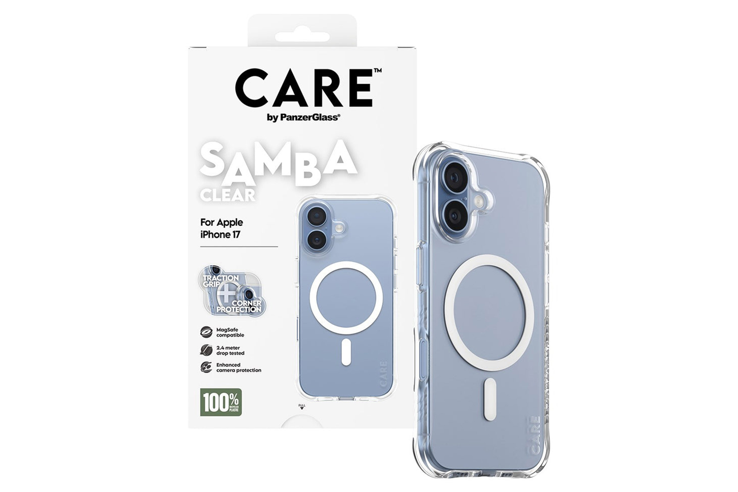 Elevate your phone’s look while keeping it protected with the Fashionable Case from CARE by PanzerGlass. Designed to be both stylish and sustainable, this case is made from 100% recycled TPU and features enhanced corner protection to protect against everyday bumps and drops. The smooth grip ensures unmatched comfort, making it as functional as it is fashionable.