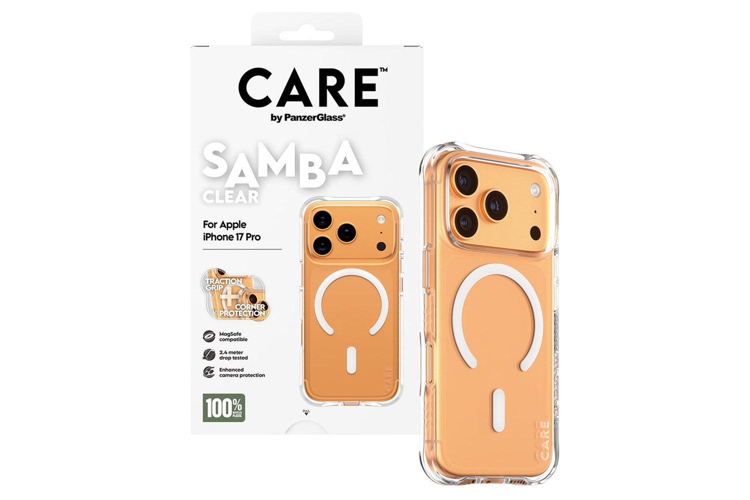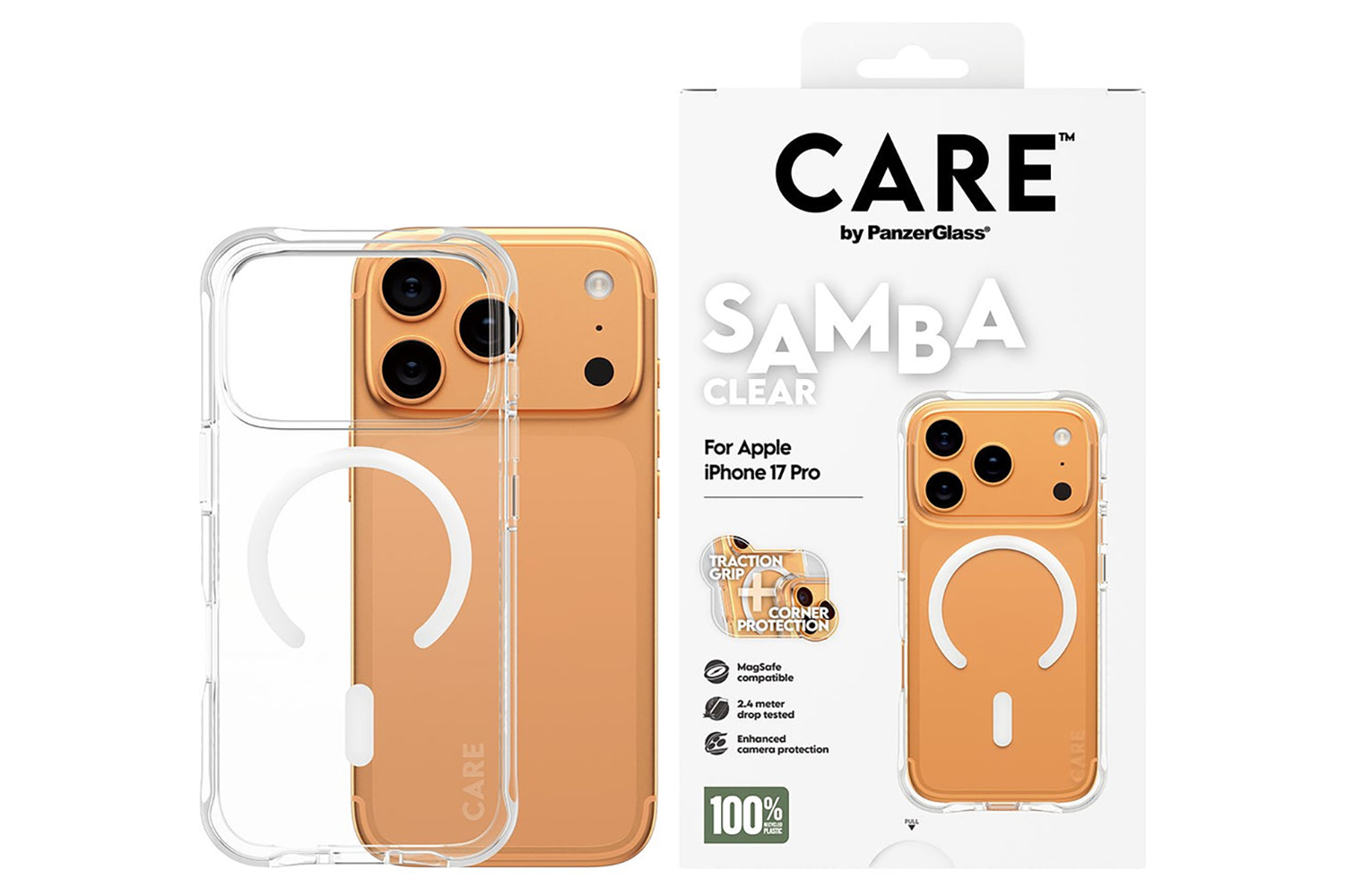 Elevate your phone’s look while keeping it protected with the Fashionable Case from CARE by PanzerGlass. Designed to be both stylish and sustainable, this case is made from 100% recycled TPU and features enhanced corner protection to protect against everyday bumps and drops. The smooth grip ensures unmatched comfort, making it as functional as it is fashionable.